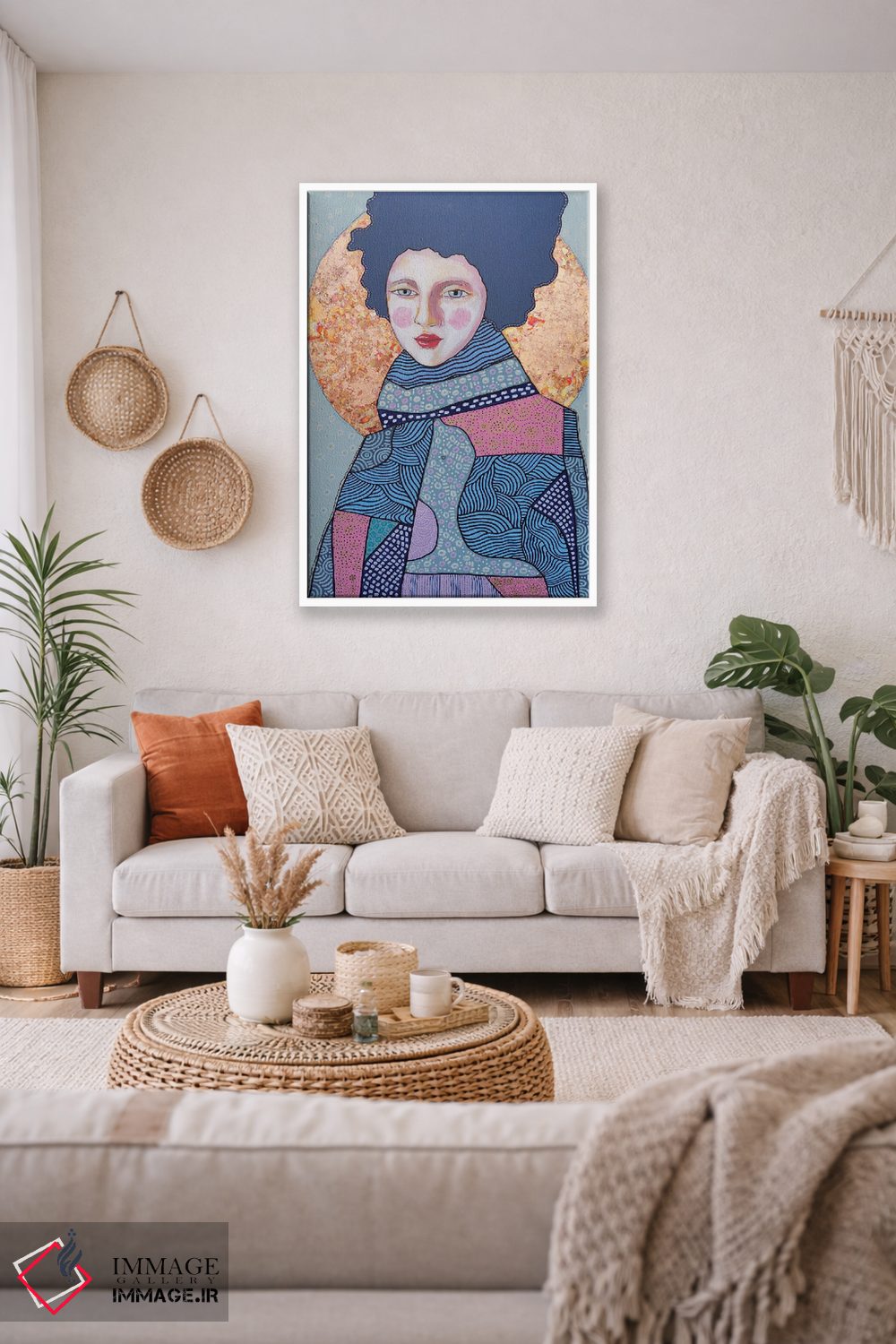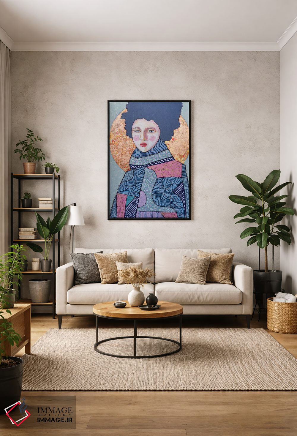 براساس پالت ترکیبی اثر، قاب تیک گرم (چوبی) پیشنهاد اول است و مشکی مات (فریم متوسط) مکمل. برای سفارشهای پروژهای با ابعاد و قابهای اختصاصی با ایماژ در تماس باشید.