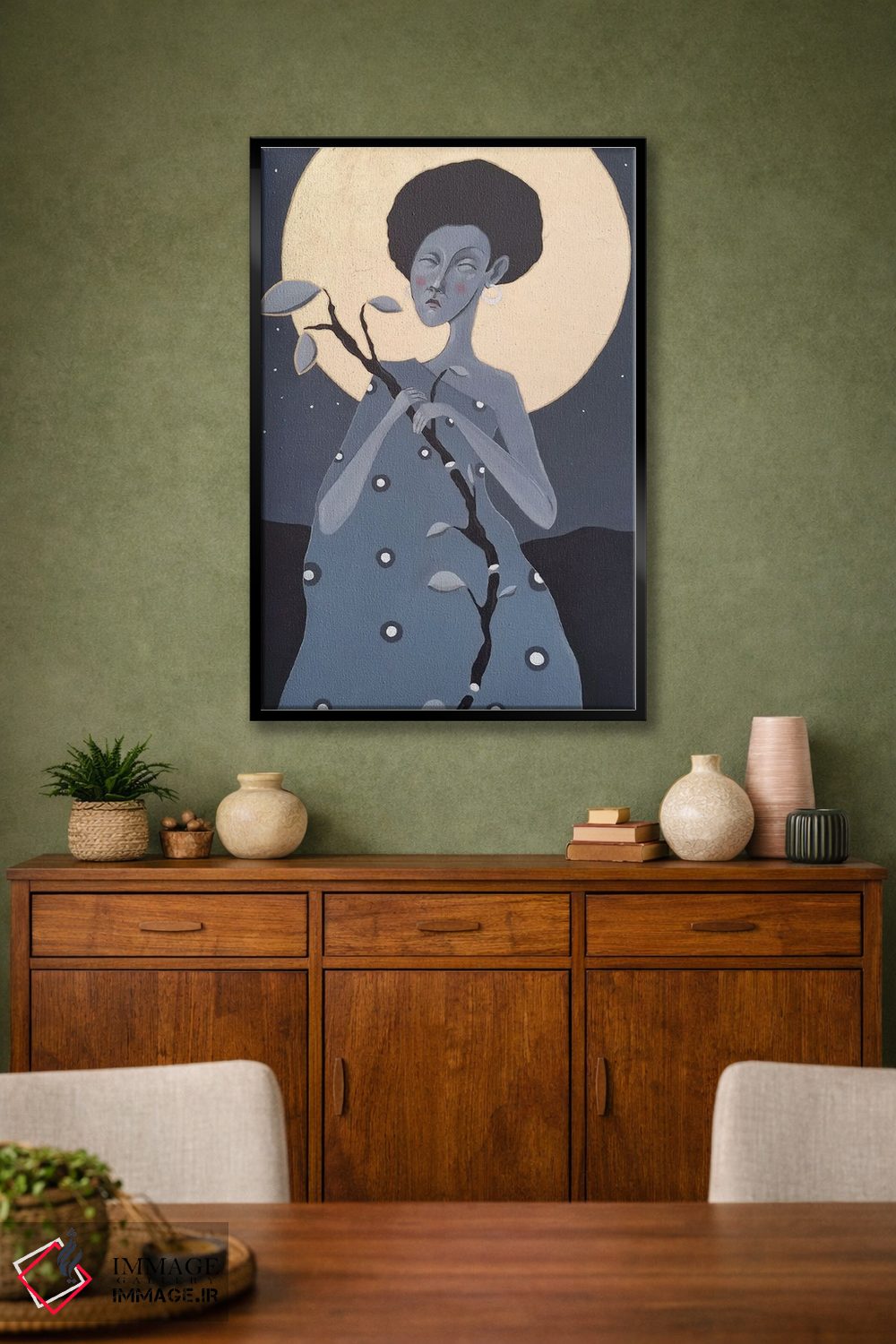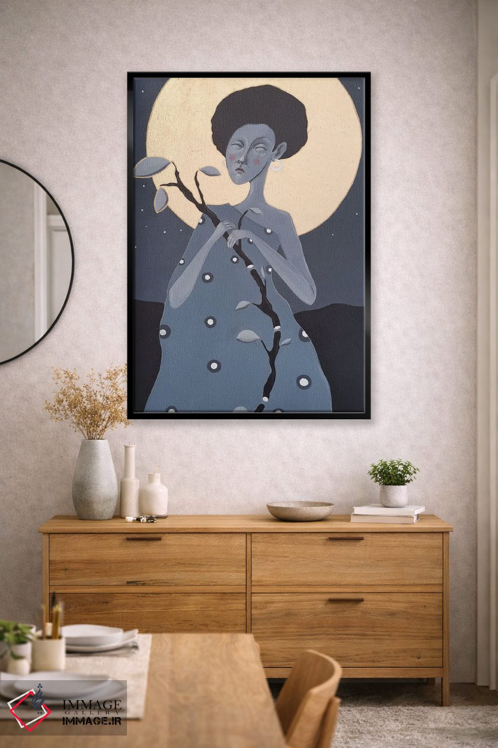 اگر اهل «کم اما درست» هستید، «مادر شب ۲» اثرِ «ایرینا پانِدِوا» روی دیوار، تمیز و دقیق دیده میشود؛ برای فضاهای کمنور که به «نقطهٔ روشن» نیاز دارند پیشنهاد میشود. هم از دور چشمگیر است و هم از نزدیک پرداخت دارد.