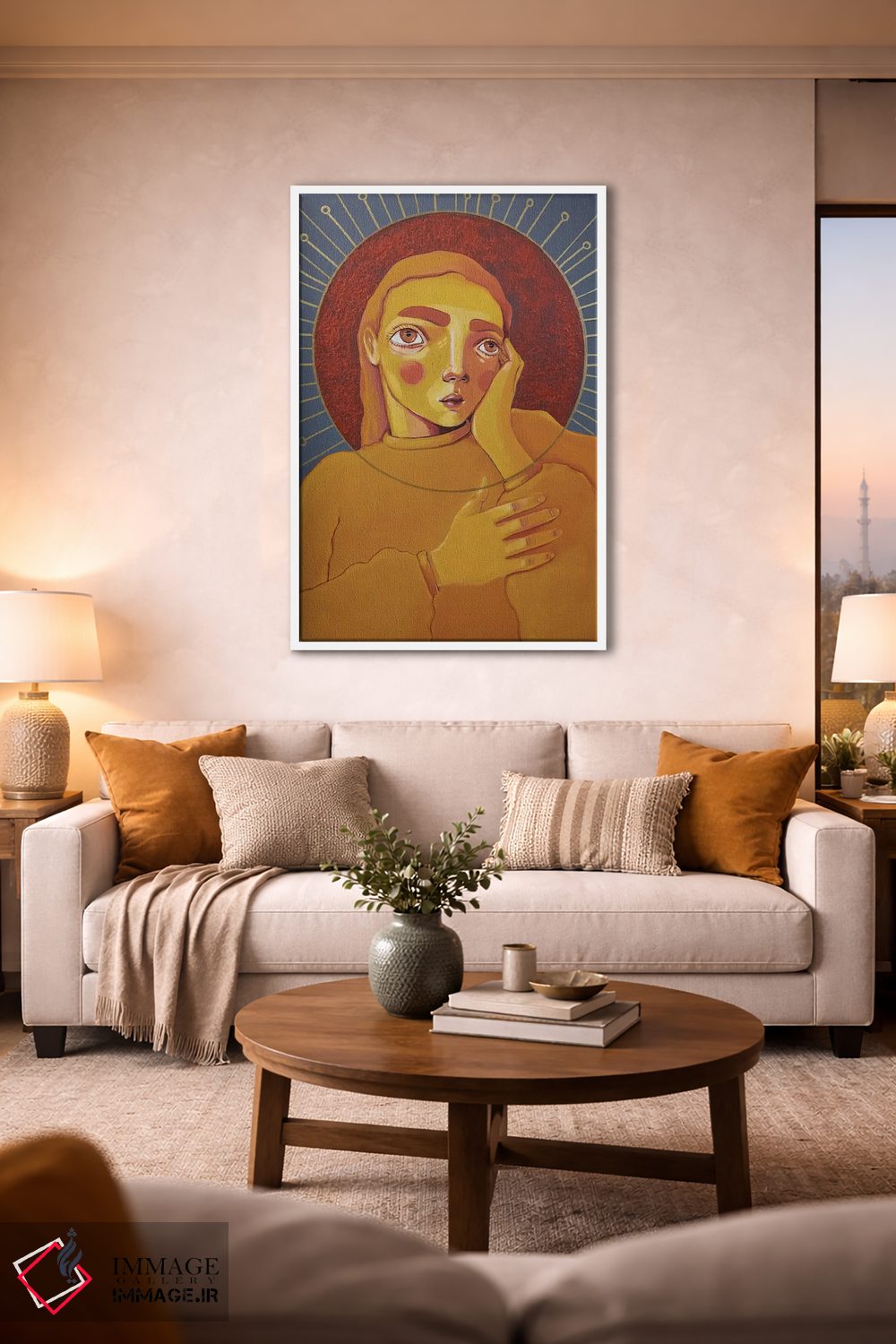 براساس پالت گرم اثر، قاب تیک گرم (چوبی) پیشنهاد اول است و مشکی مات (فریم متوسط) مکمل. برای سفارشهای پروژهای با ابعاد و قابهای اختصاصی با ایماژ در تماس باشید.