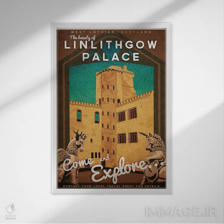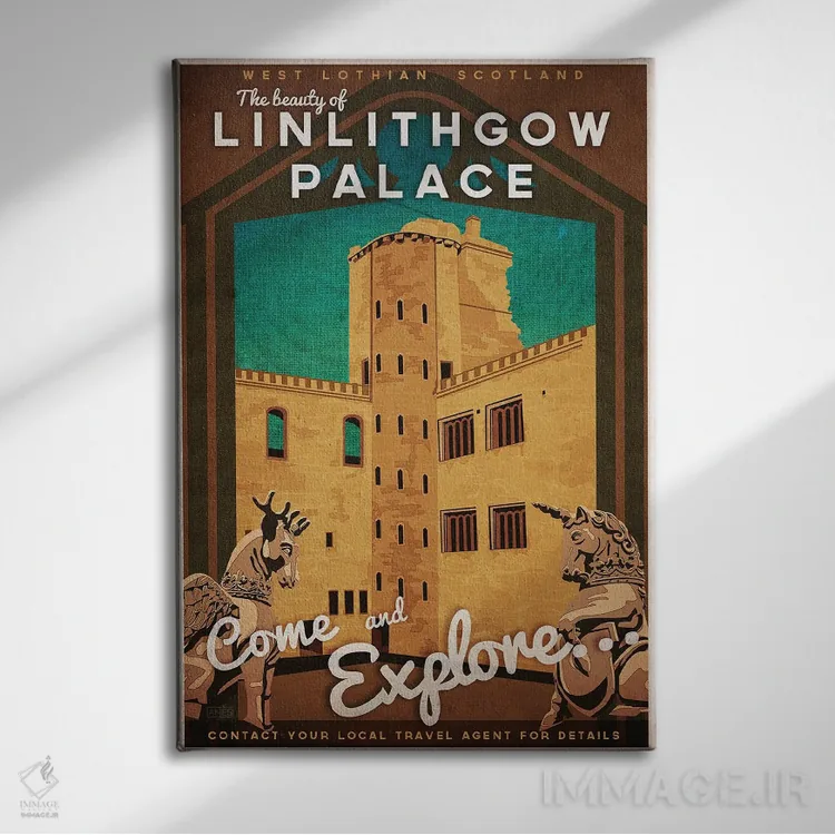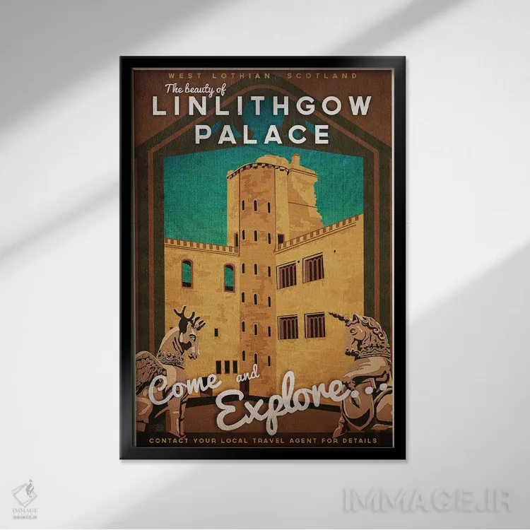 «اسکاتلند—کاخ لینلیثگو» اثرِ «میسی ایمز» ترکیب خوبی برای کنار قابهای ساده و خطوط تمیزِ دکوراسیون است.