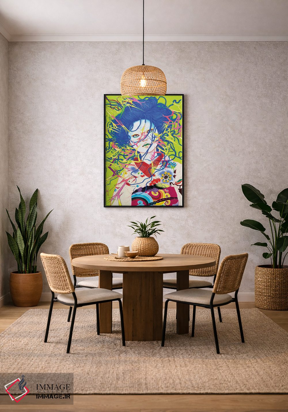 بوم گالری ایماژ طوری طراحی شده که اثر روی دیوار «پرداختشده» و حرفهای دیده شود—نه پرزرقوبرقِ بیپایه؛ بلکه دقیق و خوشپرداخت. با بافت ظریف کنواس، حس اثر هنری را در نگاه نزدیک نگه میدارد بدون اغراق؛ فقط دقیقتر. چاپ جیکلی (Giclée) کمک میکند گذارهای رنگی را نرمتر میکند و نتیجه را یکدستتر میکند. برای سفارش اندازه یا قاب متفاوت، تیم ایماژ راهنمایی میکند تا انتخاب نهایی هماهنگتر باشد؛ برای هدیهی هنری هم انتخاب محترمانهای است.