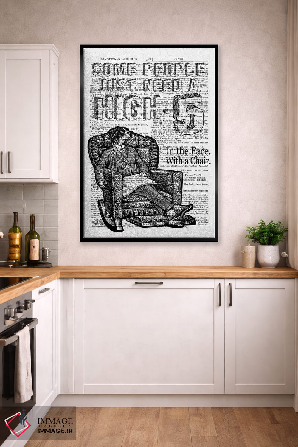 تابلو دکوراتیو بزن قدش! اثر این د فریم شاپ - نمای روبه‌رو روی دیوار