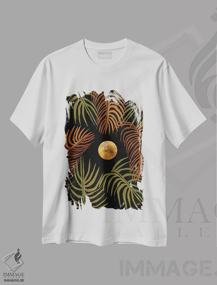 تی شرت «شب گرمسیری»؛ پیوند ماه و برگ در طراحی مینیمال