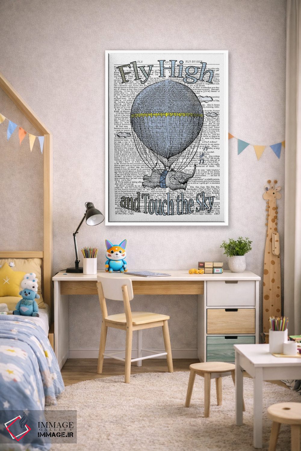 «پرواز بلند "آبی"» اثرِ «این د فریم شاپ (مغازه قابسازی هنری)» با سبک هنری و موضوعِ این اثر، یک انتخاب مدرن و تمیز برای دکور امروز است.