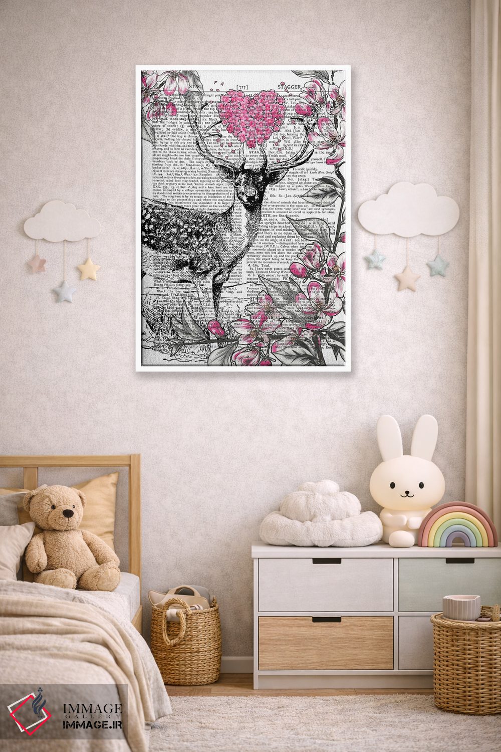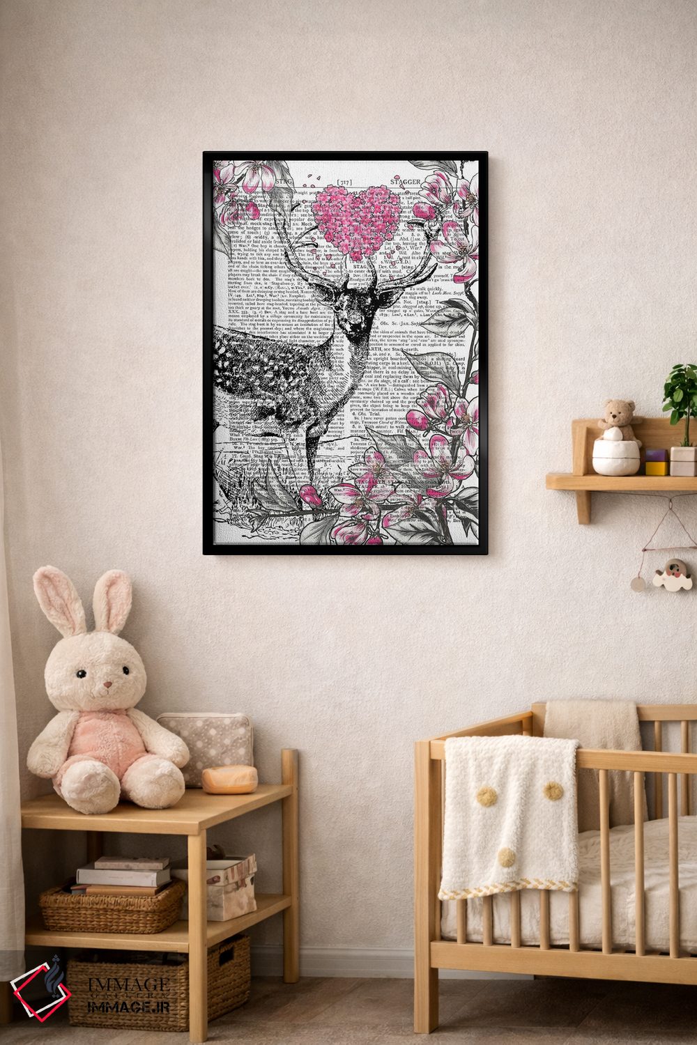 «گوزن نر» اثرِ «این د فریم شاپ (مغازه قابسازی هنری)» از آن کارهاییست که برای دکورهای مینیمال، یک نقطهٔ توجه میسازد؛ برای دیوار کنار میز کار انتخاب خوبیست. برای دیوار گالریوار هم گزینهٔ خوبیست.