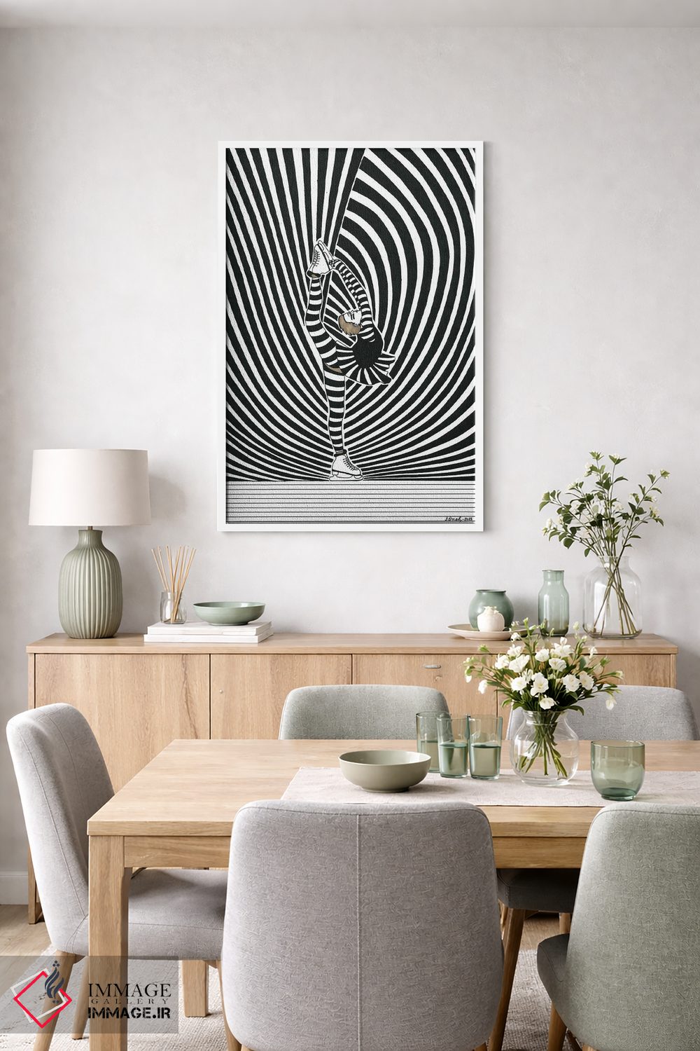 این اثرِ «ابراهیم اونال» در لحن دیجیتالِ سیاهوسفید، دیوار را مرتب و شیک نگه میدارد؛ موضوعِ این اثر هم خوانا باقی میماند.