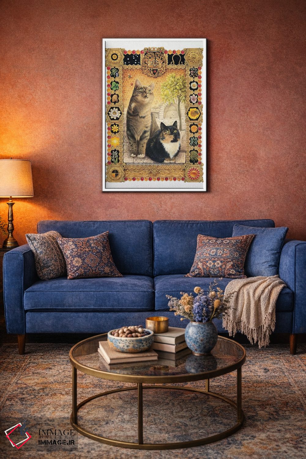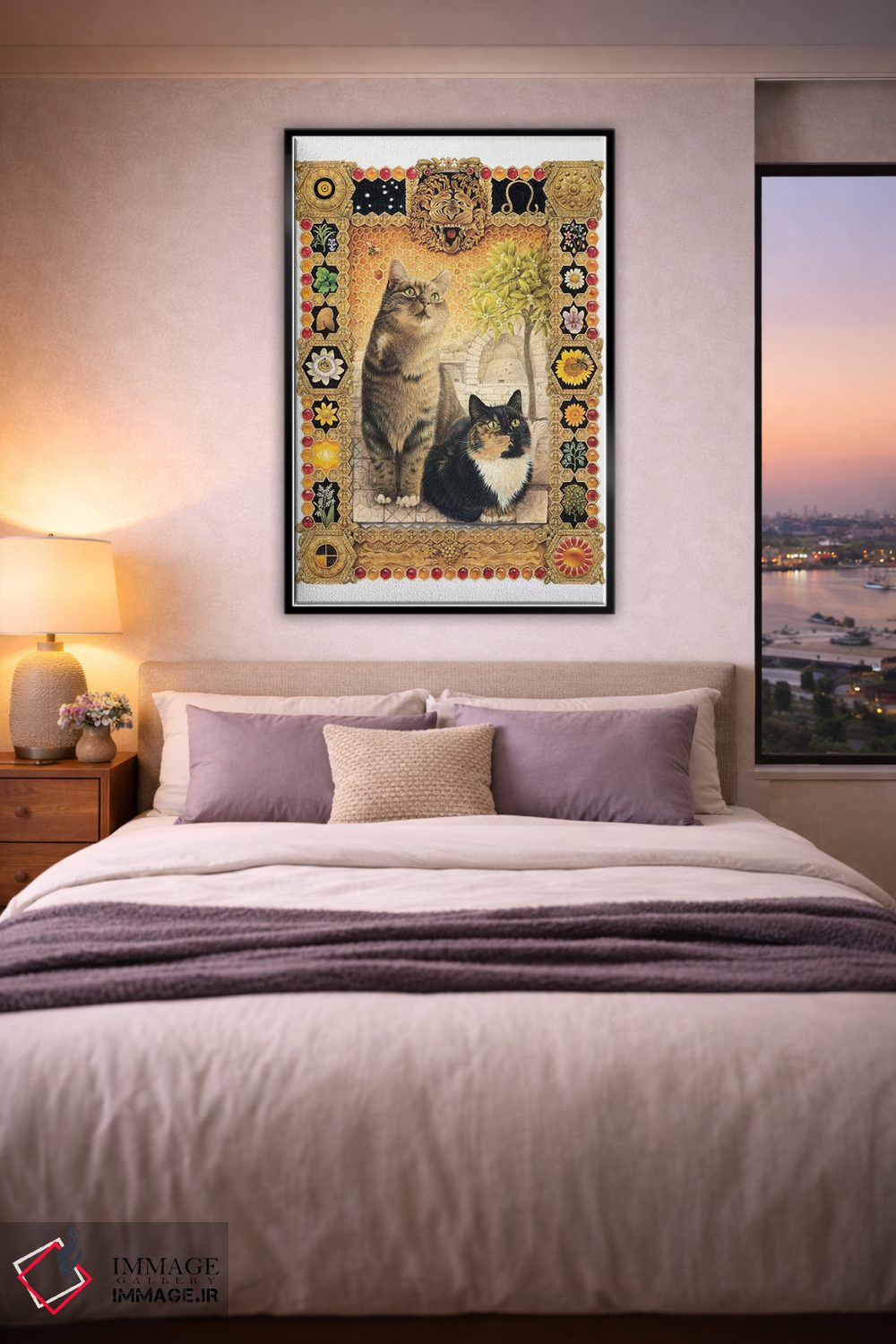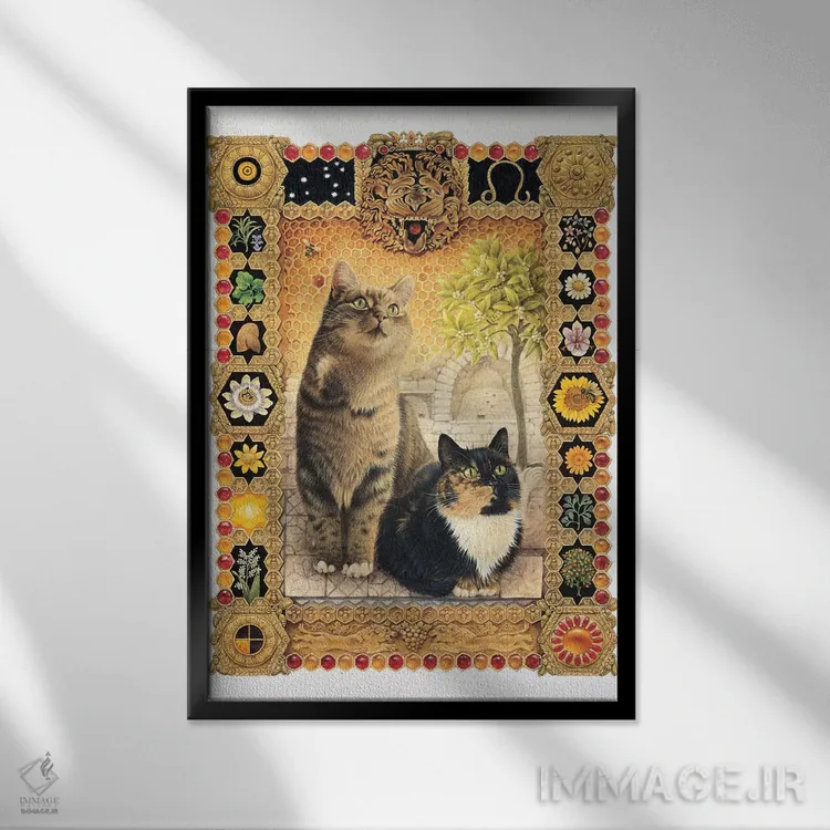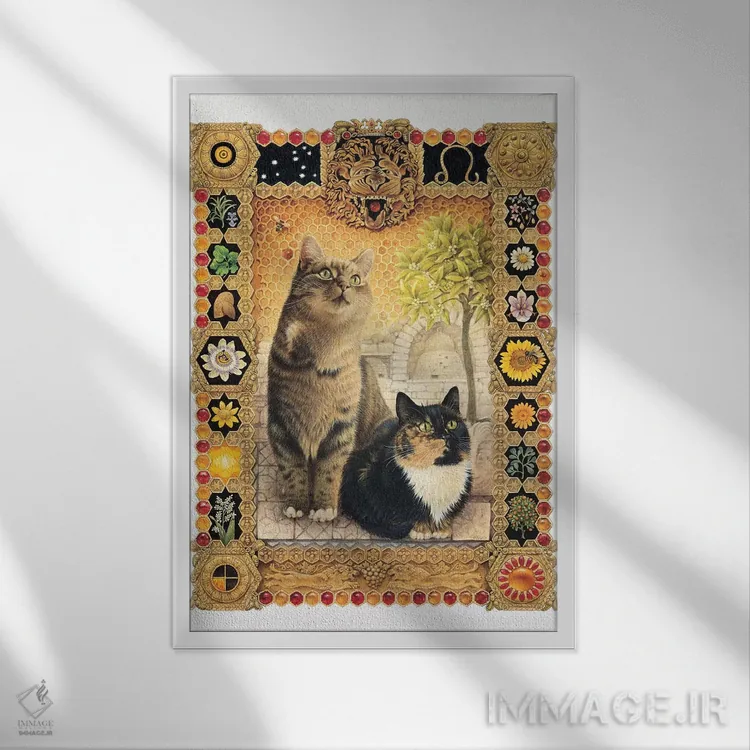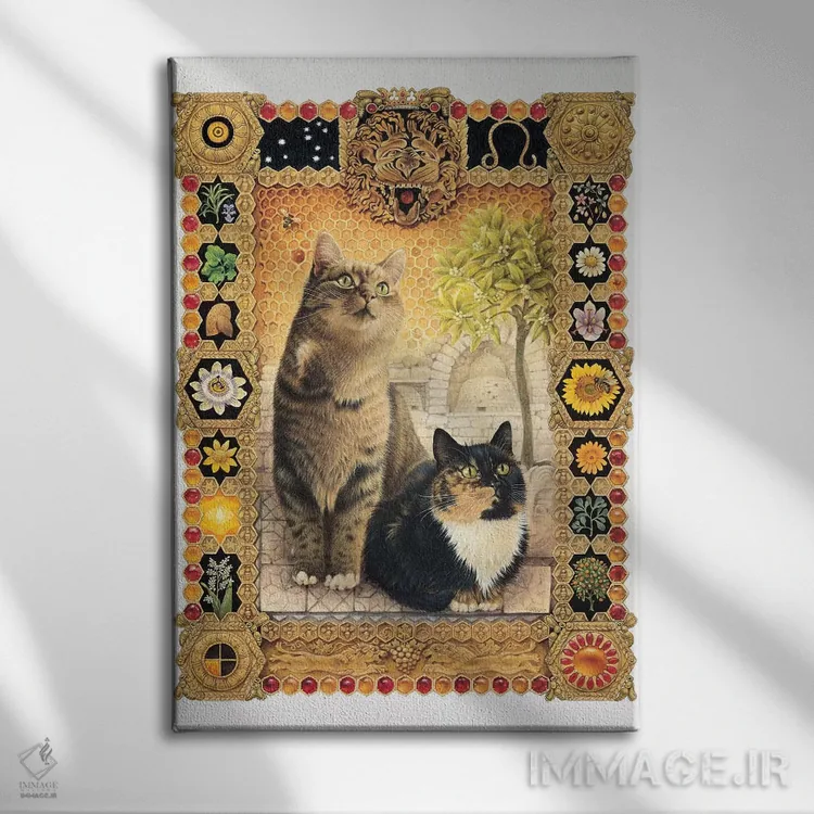 «برج اسد (شیر)» اثرِ «آیوری کتس (برند هنری نقاشی گربه)» با سبکِ دکوراتیو، به فضا ریتم میدهد و آن را از یکنواختی بیرون میآورد.