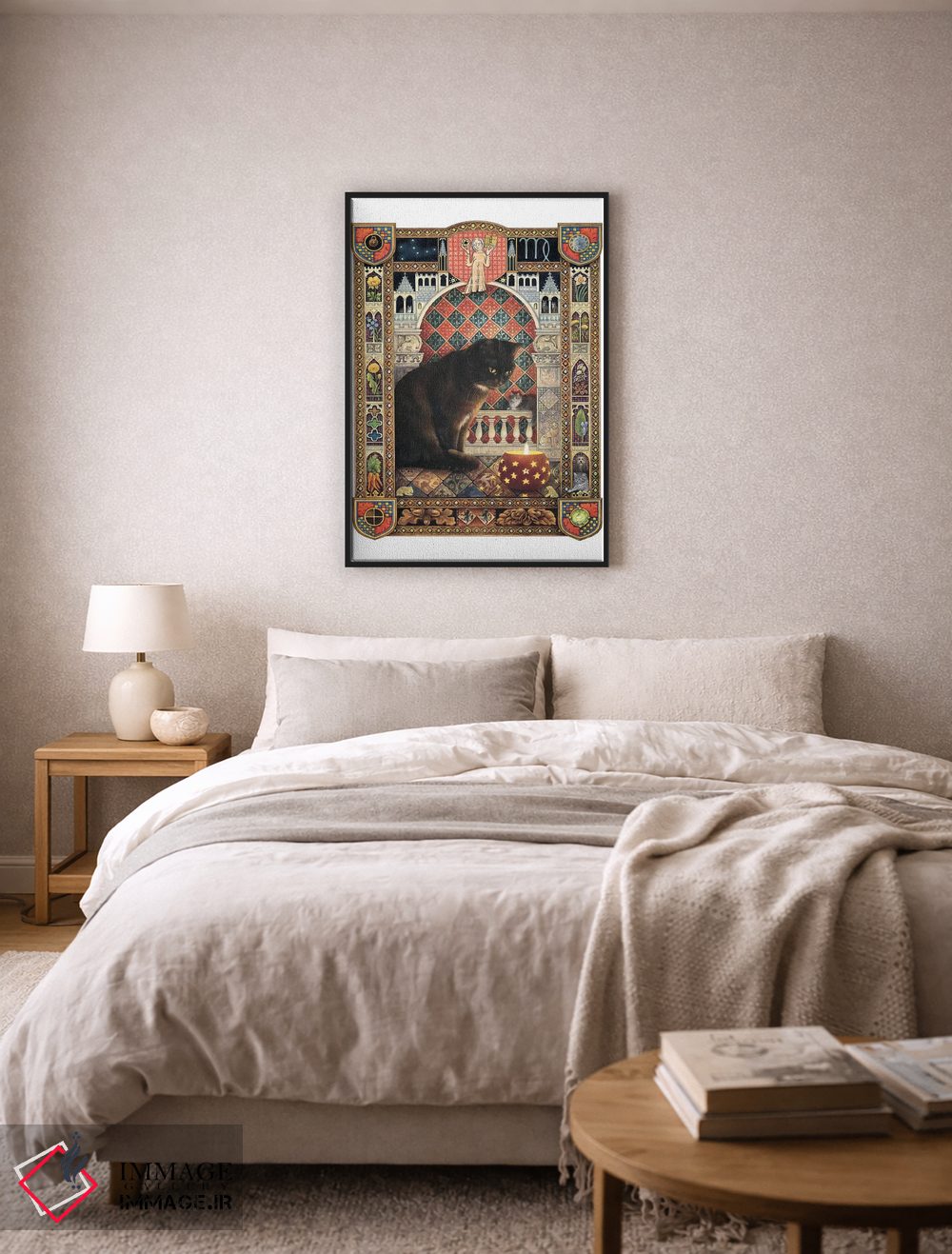 براساس پالت گرم اثر، قاب تیک گرم (چوبی) پیشنهاد اول است و مشکی مات (فریم متوسط) مکمل. برای سفارشهای پروژهای با ابعاد و قابهای اختصاصی با ایماژ در تماس باشید.
