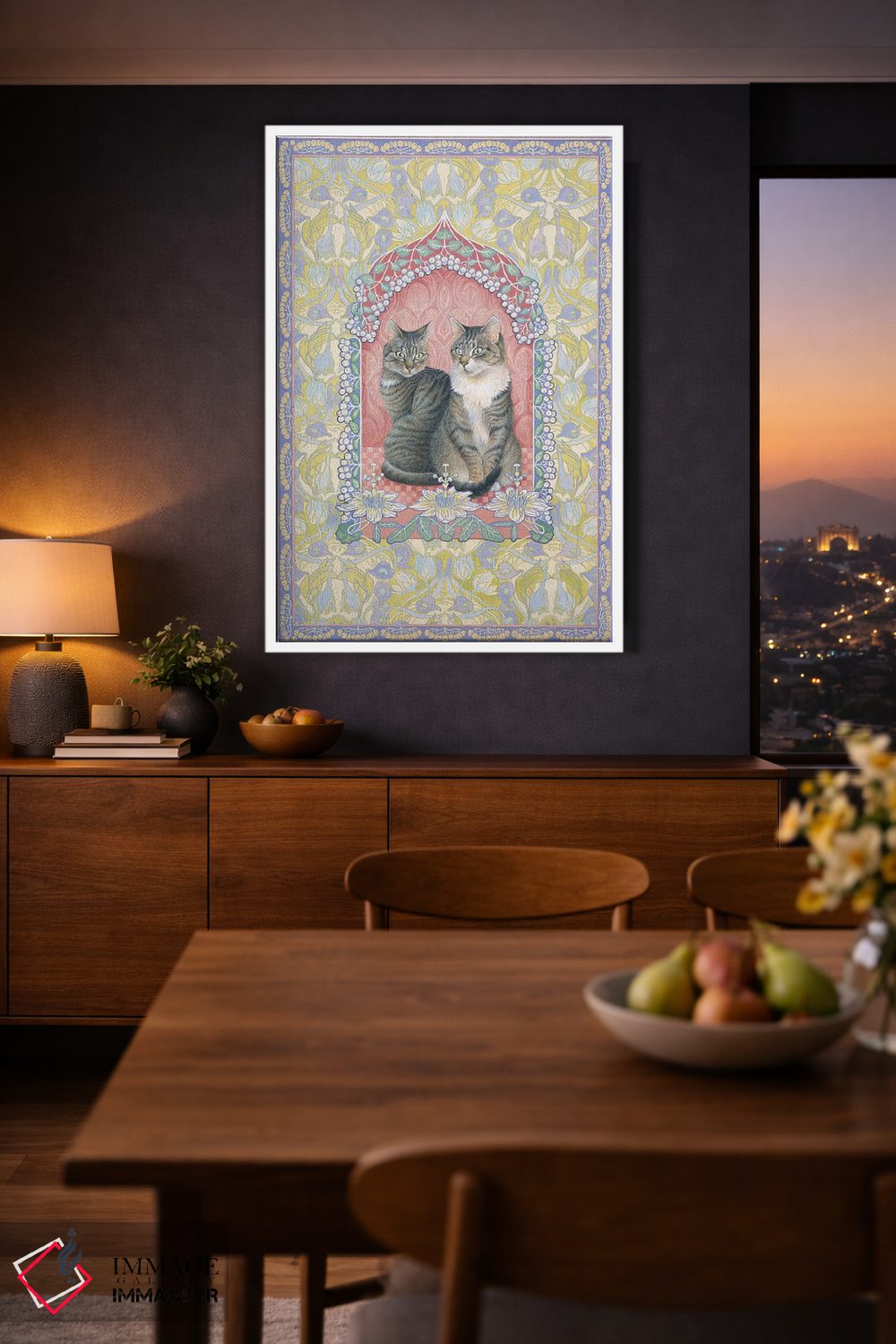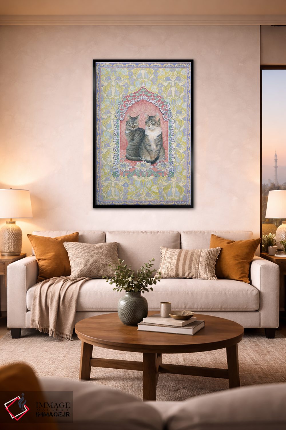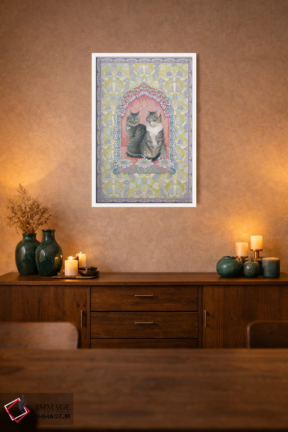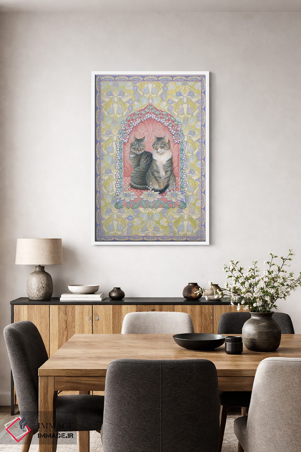 این اثر با عنوان «جما و دخترش ماپت» اثرِ «آیوری کتس (برند هنری نقاشی گربه)» بافت و جزئیات را طوری نشان میدهد که نگاه میماند؛ برای دکورهای مدرن و مینیمال انتخابی خوشسلیقه است. اگر دنبال اثر دوستداشتنیِ «بیغلو» هستید، این یکی دقیق مینشیند.