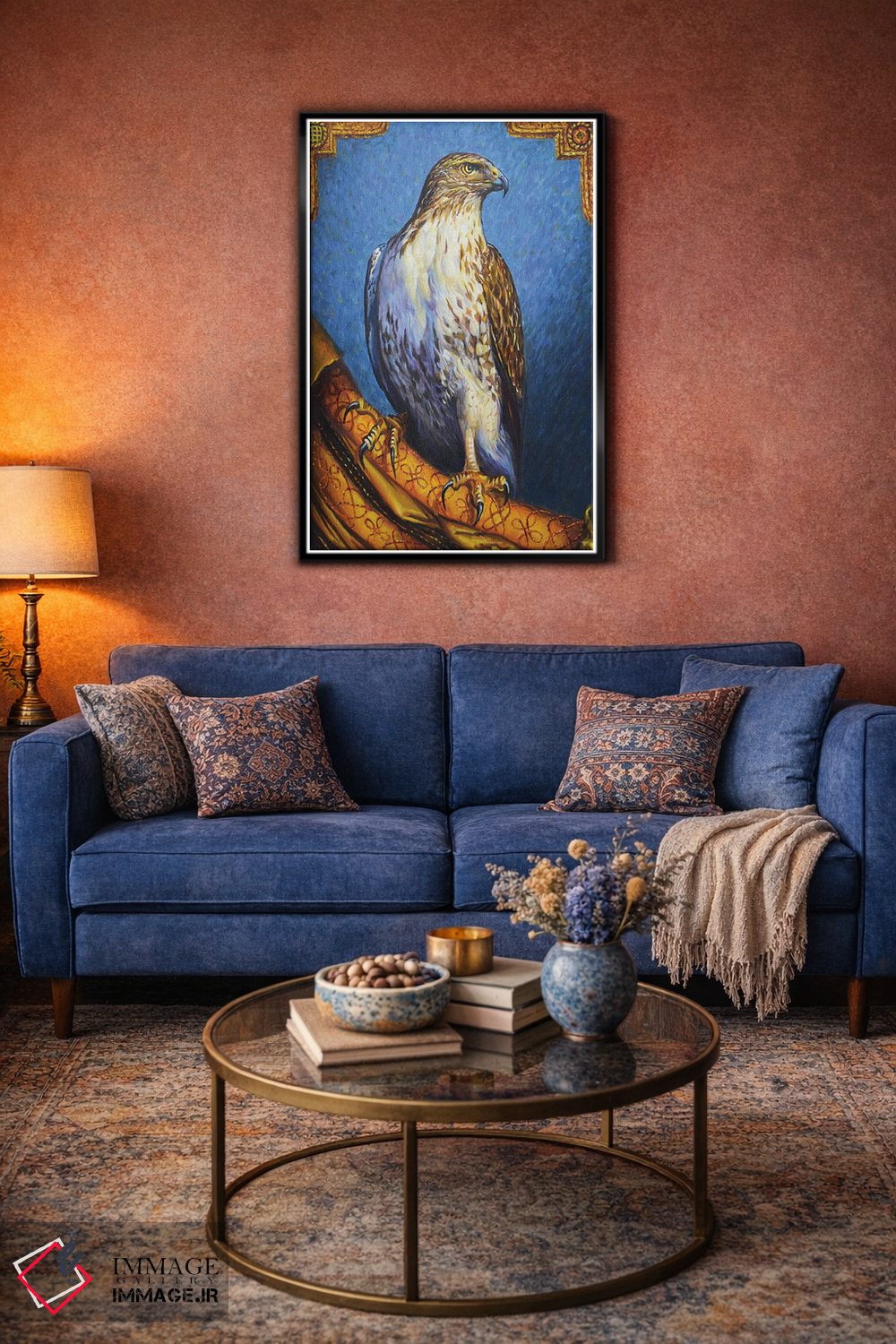 در چیدمانهای مدرن، آبی را در گلدان یا آباژور در نظر بگیرید تا نگاه به سمت اثر هدایت شود. انتخاب قاب هم میتواند این اکسنت را تقویت کند.