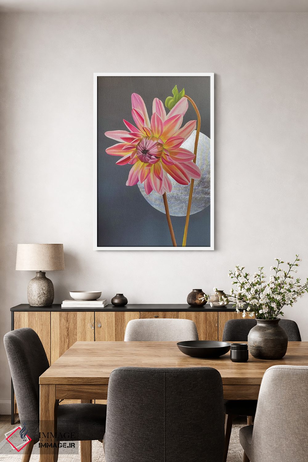 اگر محیط کمینهگرا است، صورتی را در دستهگل خشک در نظر بگیرید تا رنگها در فضا نفس بکشند. اغراق لازم نیست.