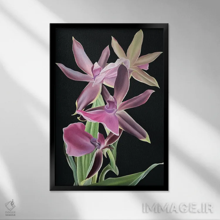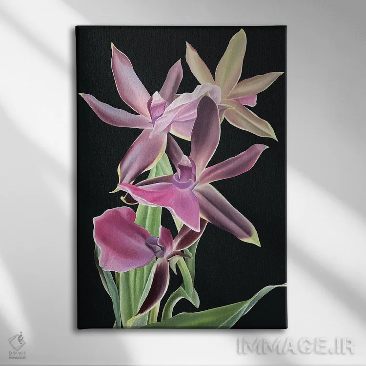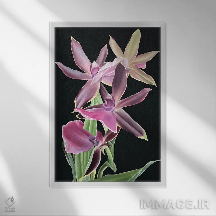 اگر دوست دارید دیوار روشنتر و آرامتر دیده شود، «مخمل سلطنتی» اثرِ «ایلدزه اوس» مثل یک قطعهٔ دکورِ همیشهبهروز عمل میکند، برای کنار میز آرایش یا کنسول گزینهٔ مناسبیست. فضا را شلوغ نمیکند؛ فقط لطیفترش میکند.
