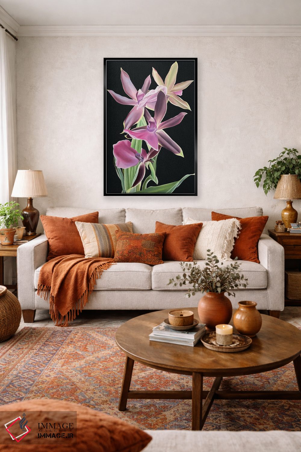 بوم گالری ایماژ نسخهی دکوراتیوِ سطحبالا از یک اثر هنری است؛ روی کنواس سفیدِ یکدست و بدون اسید با چاپ هنریِ دقیق (Giclée) برای گذارهای نرمتر و وضوح بالاتر با جوهرهای آرشیویِ حرفهای برای لایههای رنگی خواناتر؛ روی دیوار، کار یکدستتر و خوشکیفیتتر دیده میشود. کلافکشی مرتب و یراق نصب استاندارد، تجربهی نصب را ساده میکند. در صورت تمایل میتوانید نسخهی قابدار را هم انتخاب کنید یا برای قاب و اندازه سفارشی با ما در تماس باشید.