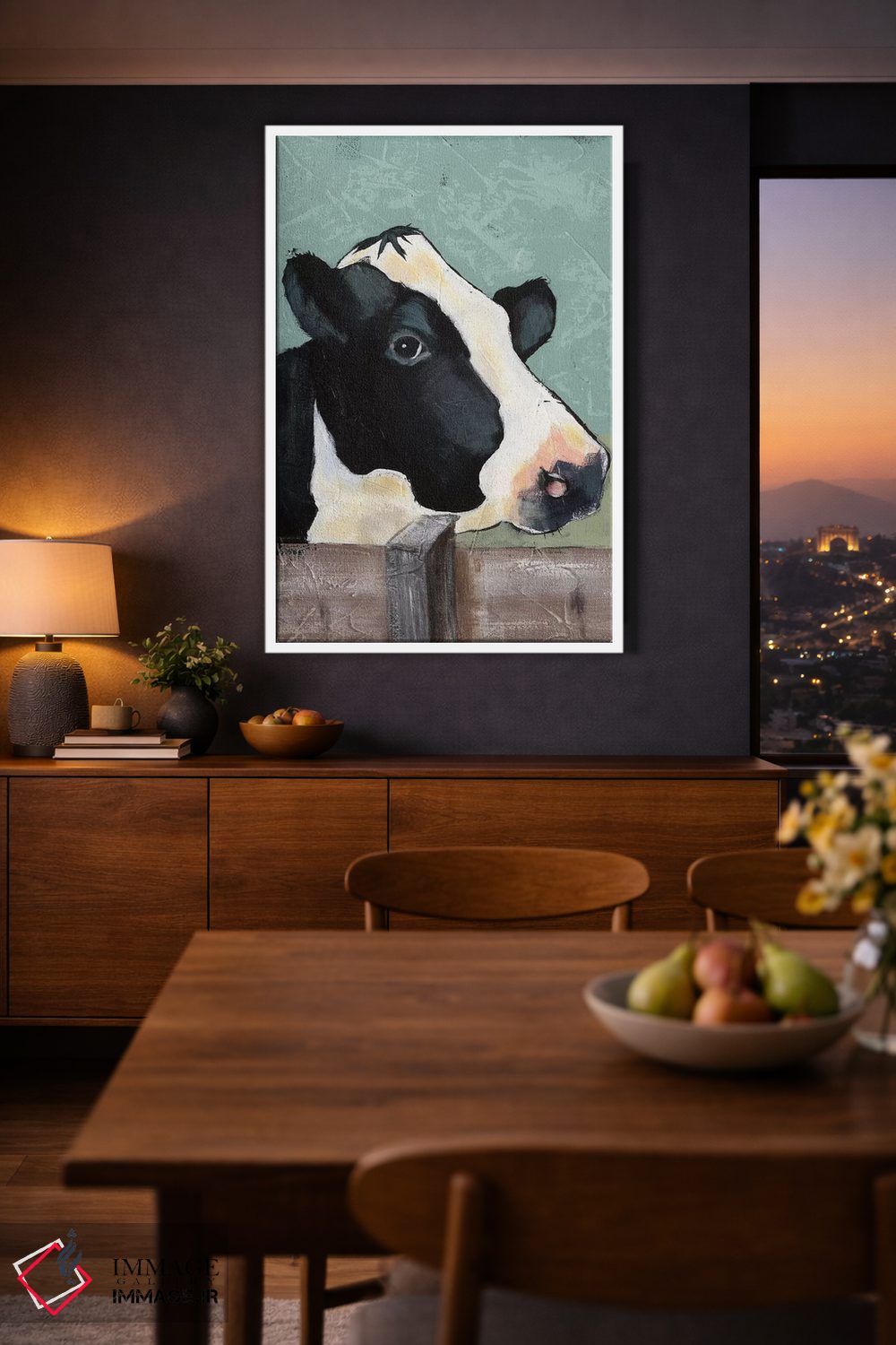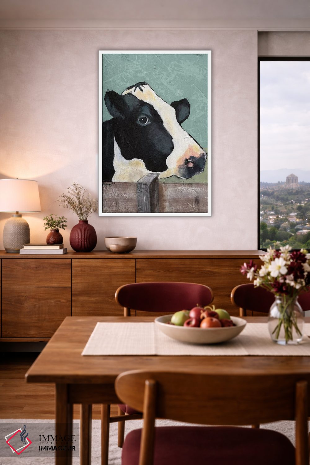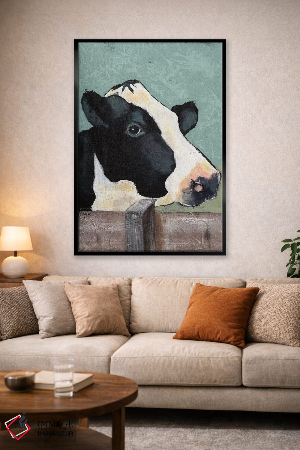 برای اتاقی که به یک عنصر دوستداشتنی نیاز دارد، «گاو هلشتاین I» اثرِ «جید رینولدز» فضا را صمیمیتر و دعوتکنندهتر نشان میدهد؛ برای خانههایی با چوب و پارچههای گرم انتخابی خوشسلیقه است. با قاب چوبی یا مشکی، حس مرتبتری پیدا میکند.