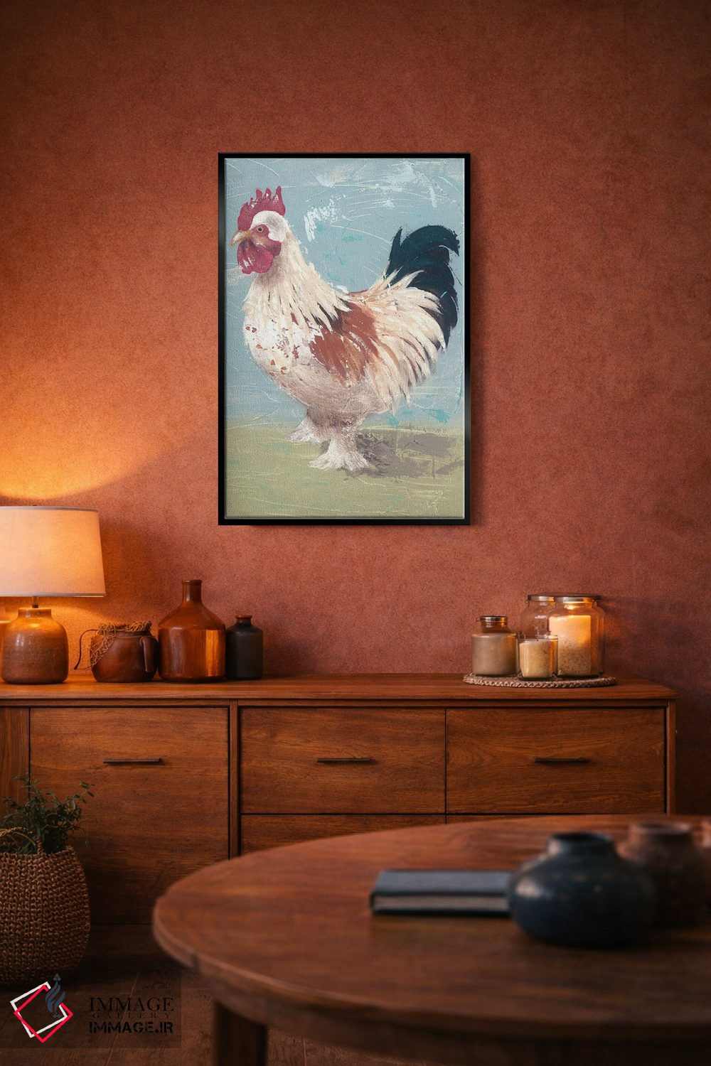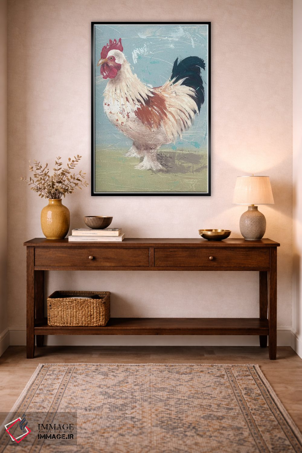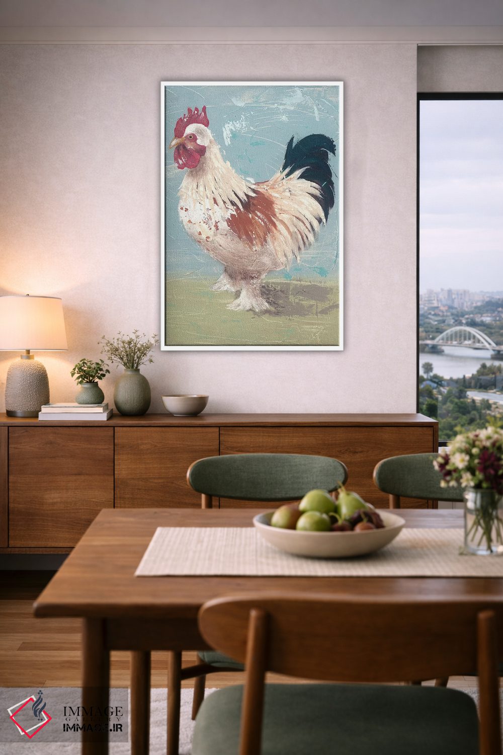 براساس پالت ترکیبی اثر، قاب بلوط روشن (چوبی) پیشنهاد اول است و استخوانی ملایم مکمل. برای سفارشهای پروژهای با ابعاد و قابهای اختصاصی با ایماژ در تماس باشید.