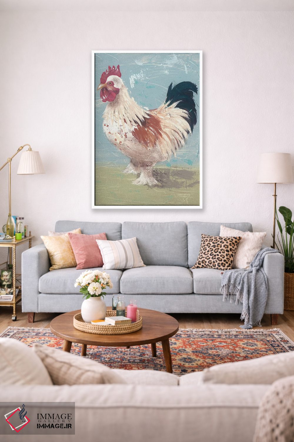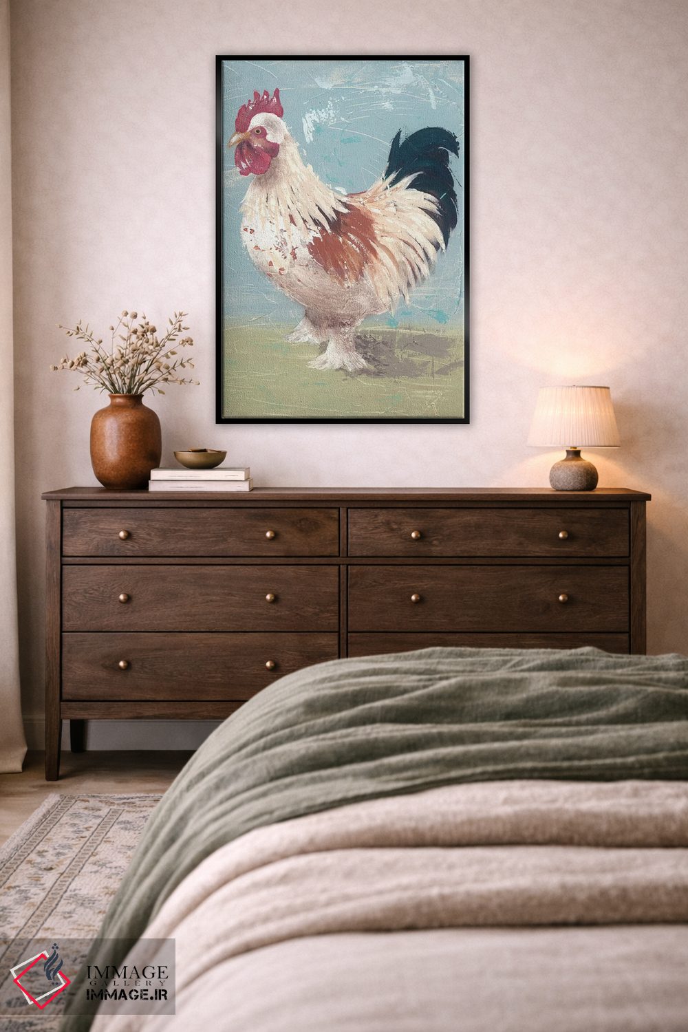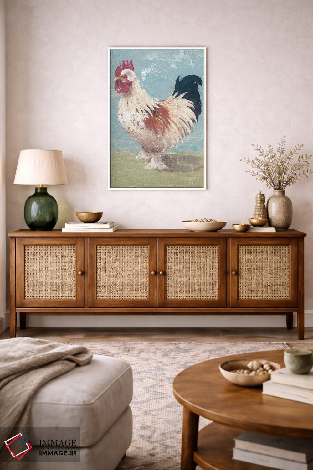 براساس پالت ترکیبی اثر، قاب بلوط روشن (چوبی) پیشنهاد اول است و استخوانی ملایم مکمل. برای سفارشهای پروژهای با ابعاد و قابهای اختصاصی با ایماژ در تماس باشید.