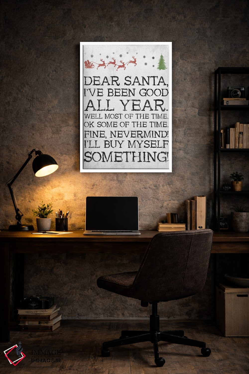تابلو دکوراتیو بابانوئل عزیز بی خیال سفید اثر جیس گری