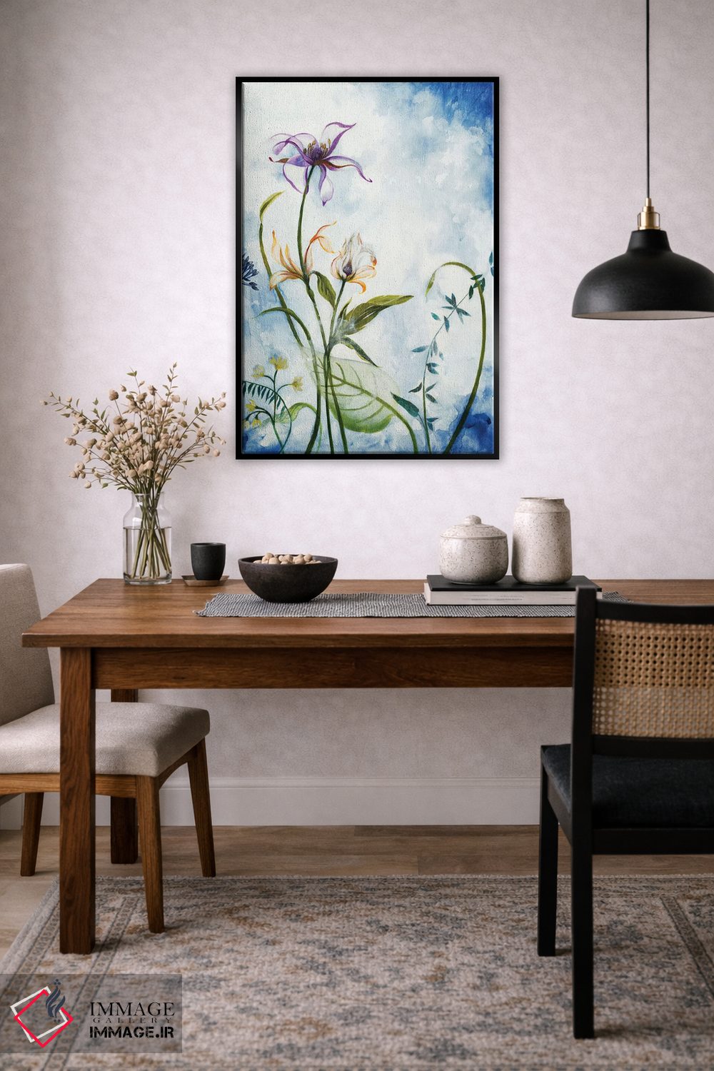 بوم گالری ایماژ طوری طراحی شده که اثر روی دیوار «پرداختشده» و حرفهای دیده شود—نه پرزرقوبرقِ بیپایه؛ بلکه دقیق و خوشپرداخت. بافت ظریف کنواس باعث میشود حس اثر هنری را در نگاه نزدیک نگه میدارد و همین «پرداخت» تفاوت را میسازد. در قابپذیری، قاب مناسب مرز بصری تمیزتری به اثر میدهد. حاصل کار، یک تابلو خوشنشین است که هم از دور اثرگذار است و هم از نزدیک خوشخوان؛ برای هدیهی هنری هم انتخاب محترمانهای است.