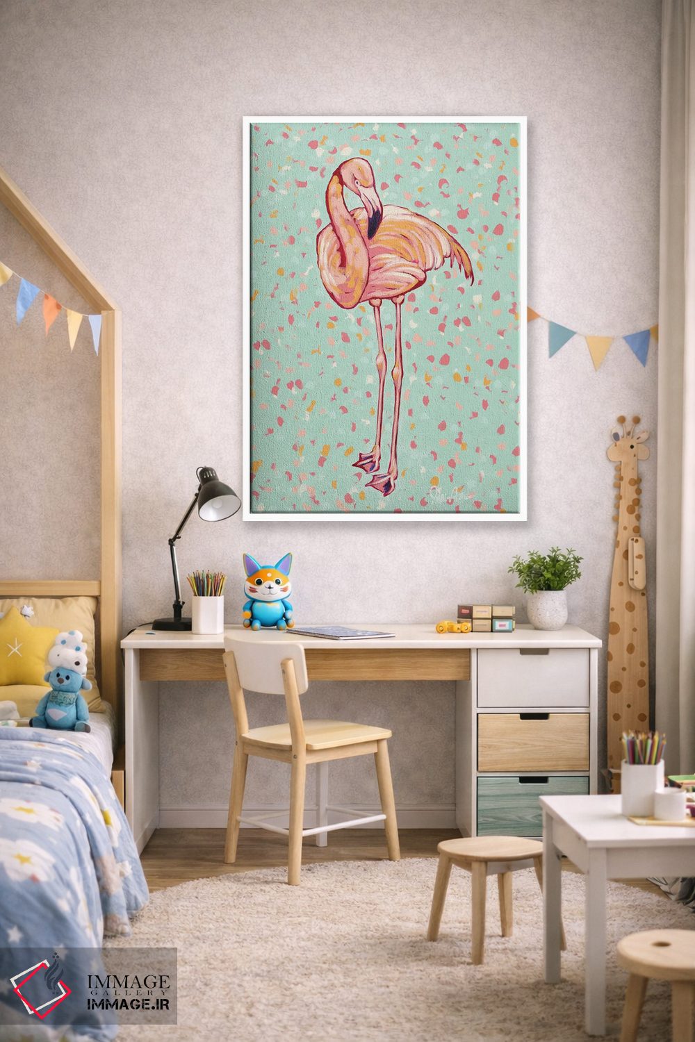 این اثر با عنوان «پرتره فلامینگو I» اثرِ «جودی آگوستین» فضا را صمیمیتر و دعوتکنندهتر نشان میدهد؛ برای هدیهدادن به دوستداران حیوانات انتخابی خوشسلیقه است. در کنار گیاهان و نور طبیعی، جذابتر هم میشود.