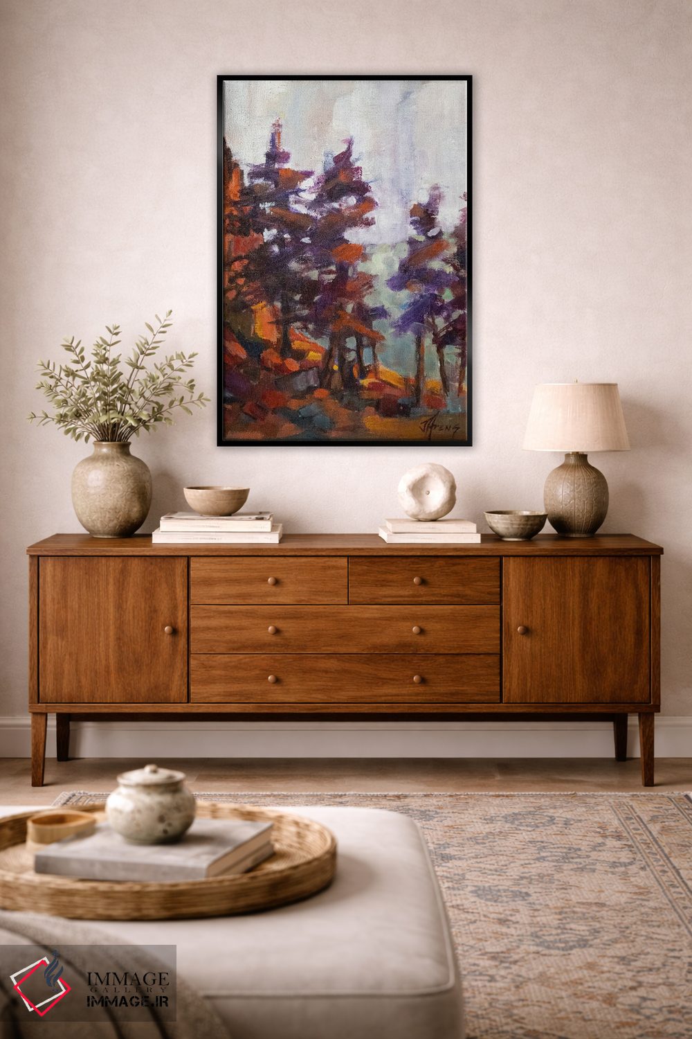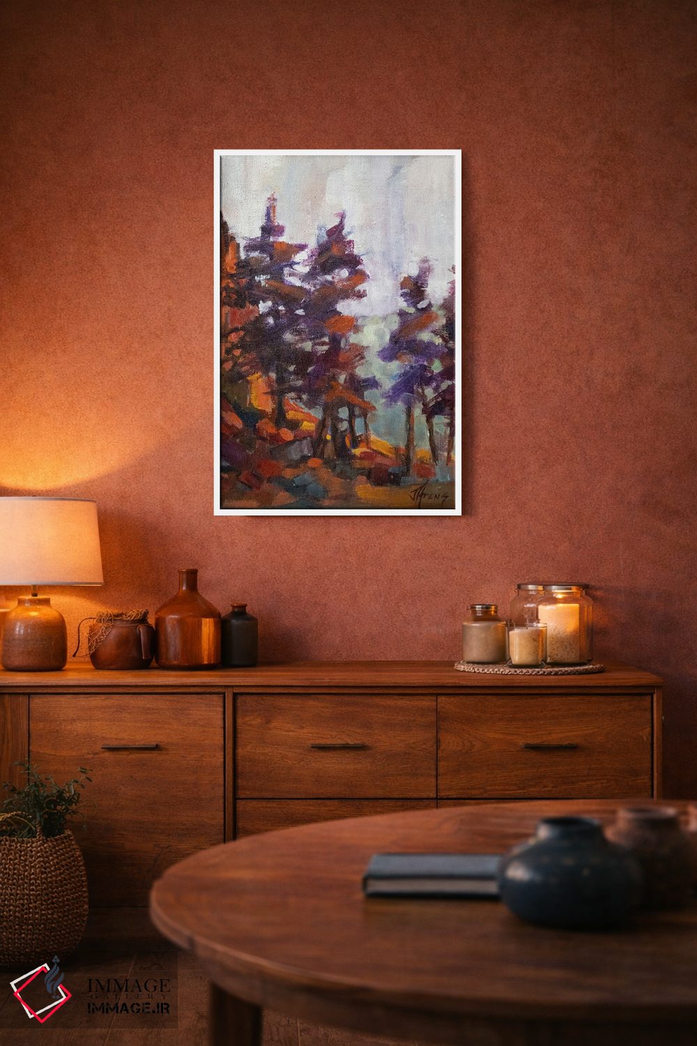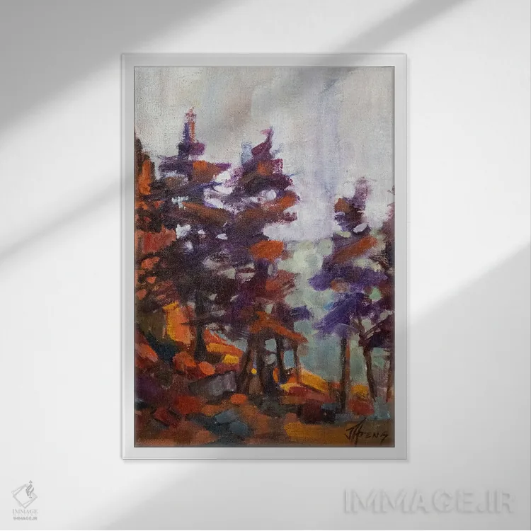 براساس پالت ترکیبی اثر، قاب تیک گرم (چوبی) پیشنهاد اول است و مشکی مات (فریم متوسط) مکمل. برای سفارشهای پروژهای با ابعاد و قابهای اختصاصی با ایماژ در تماس باشید.