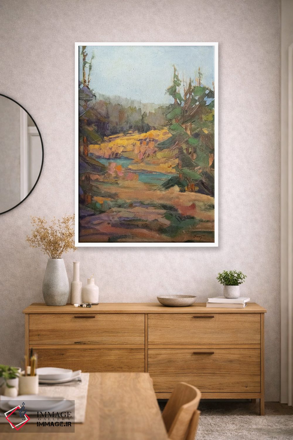 اگر به دکورهای طبیعی علاقه دارید، «سرچشمهها» اثرِ «جودی آهرنز» حس طراوت را بدون شلوغی وارد اتاق میکند، برای فضای غذاخوری گزینهٔ مناسبیست. برای دیوار گالری هم ترکیبپذیر و خوشنشین است.