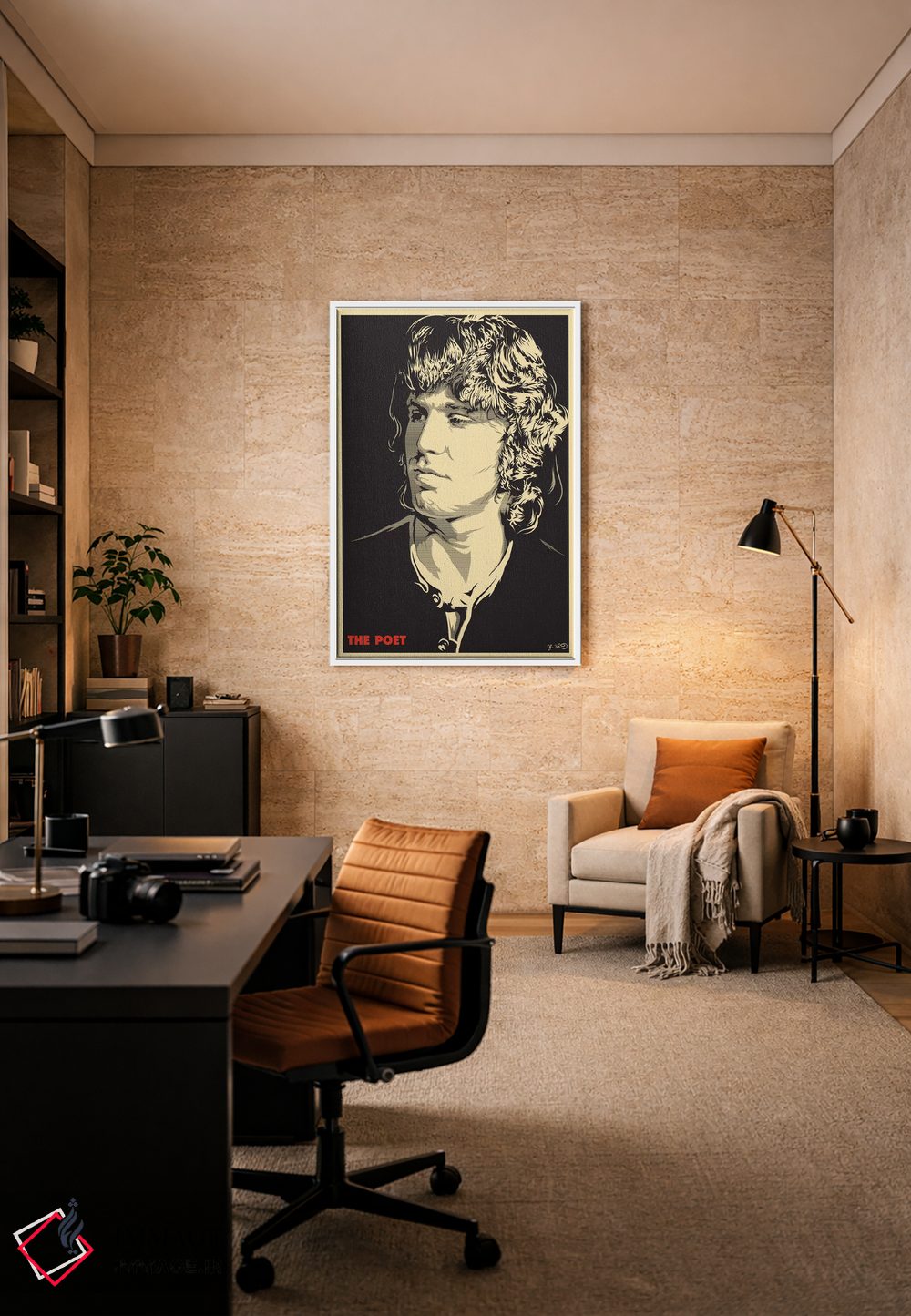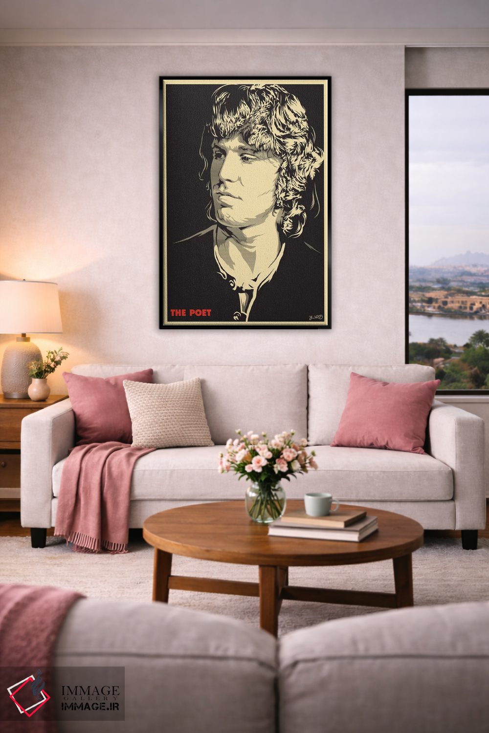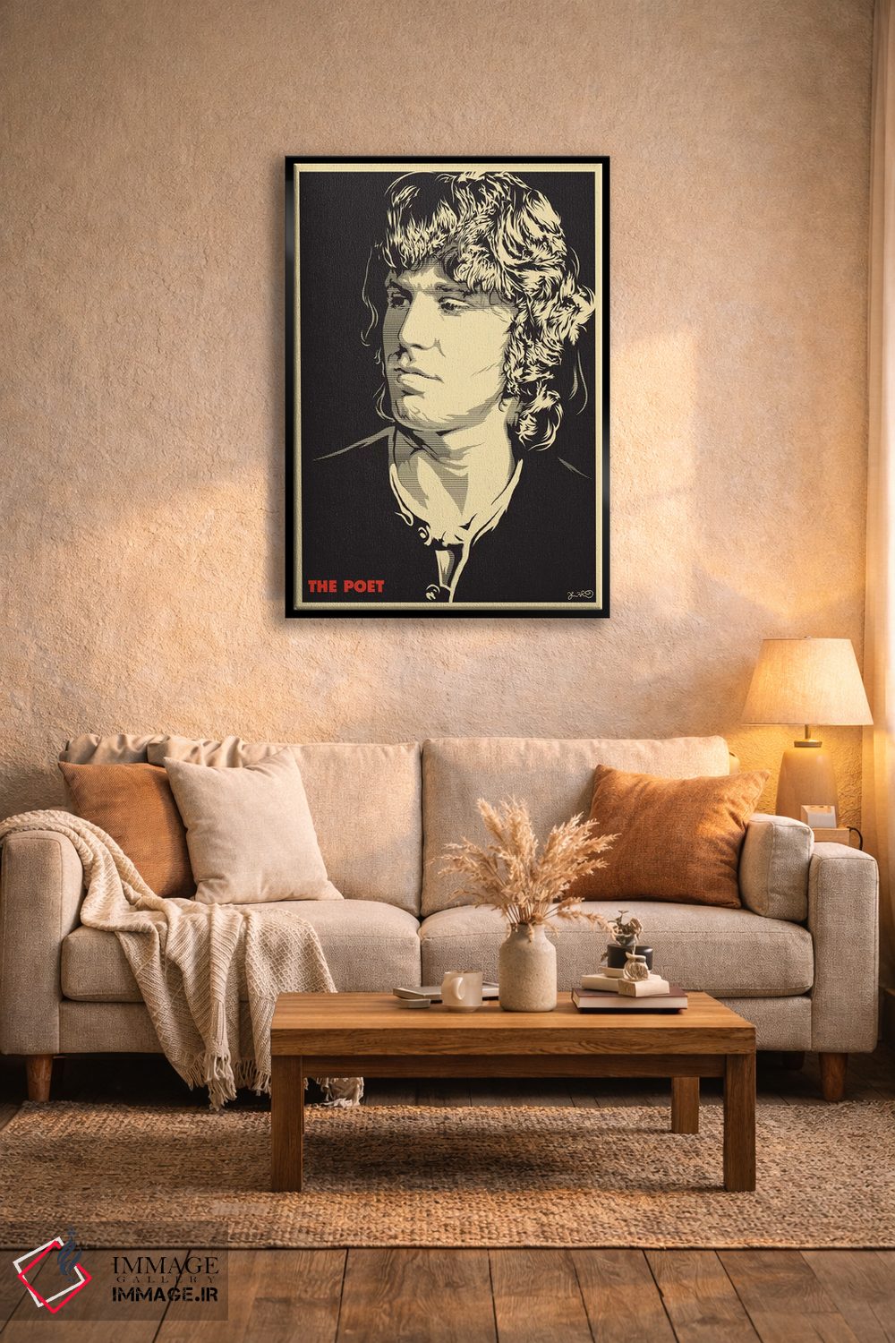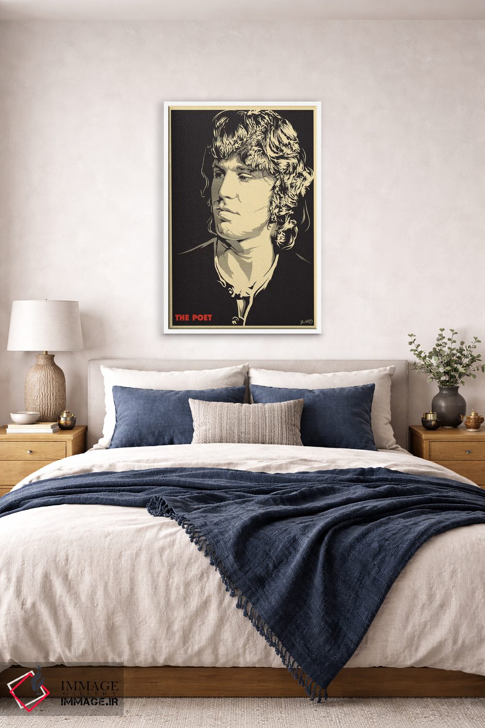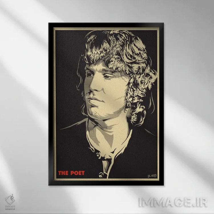 «شاعر: جیم موریسون» اثرِ «جاشوا بودیچ» میتواند اتاق را جمعوجورتر و مرتبتر نشان بدهد؛ برای اتاق خوابهای آرام و روشن پیشنهاد میشود. برای ترکیب با چوب، سنگ یا فلز، انتخابی دقیق است.