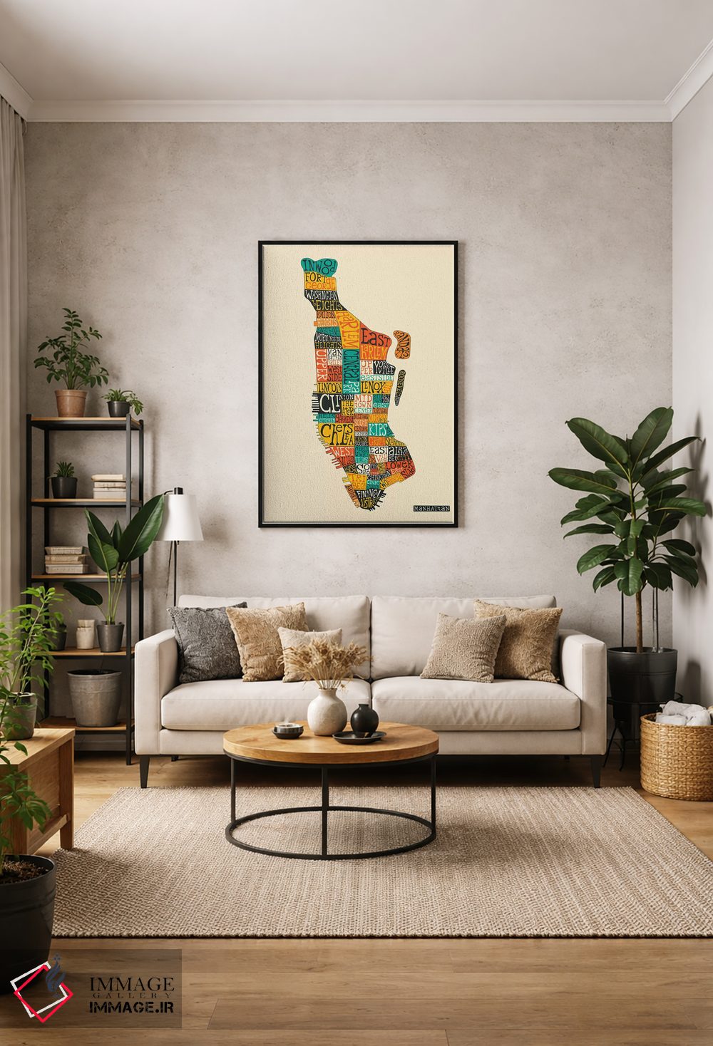 براساس پالت ترکیبی اثر، قاب بلوط روشن (چوبی) پیشنهاد اول است و استخوانی ملایم مکمل. برای سفارشهای پروژهای با ابعاد و قابهای اختصاصی با ایماژ در تماس باشید.