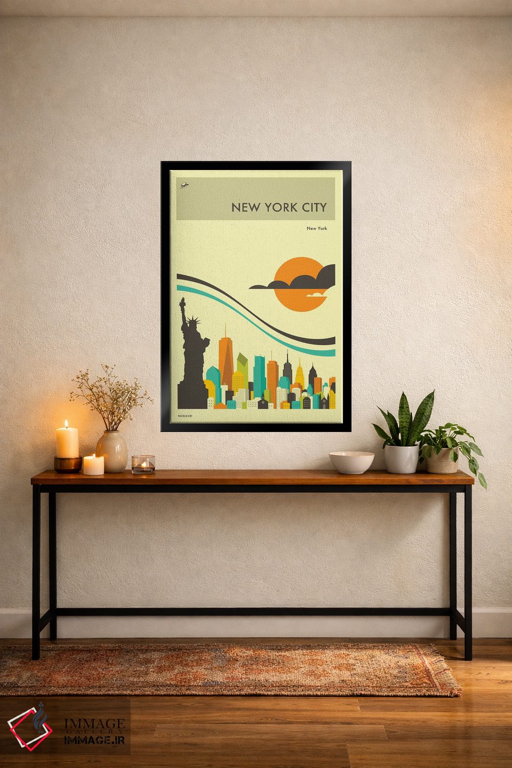 تابلو دکوراتیو افق شهر نیویورک II اثر جازبری بلو - نمای روبه‌رو روی دیوار