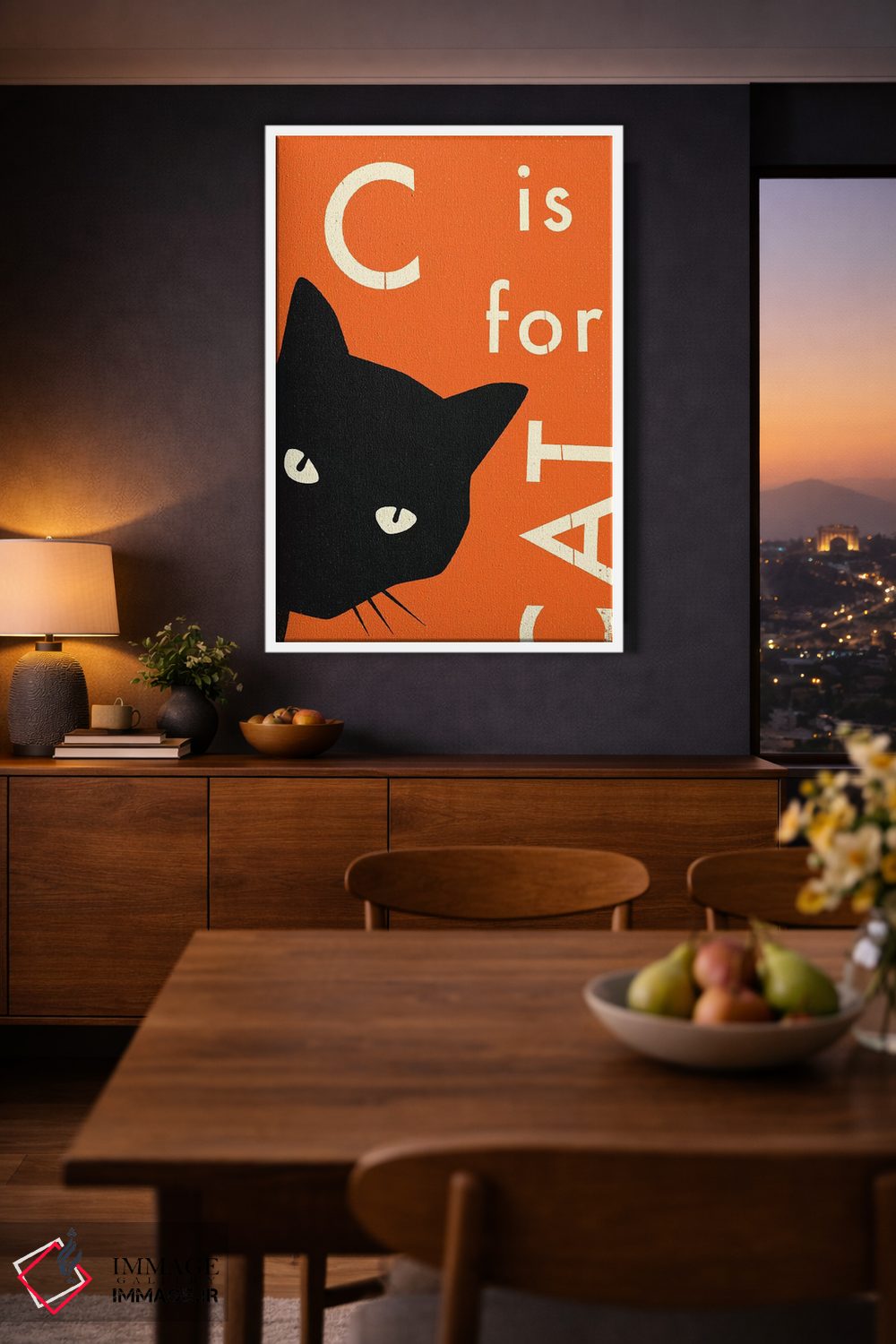 این اثرِ تزئینی با موضوعِ این اثر، با روایتی مینیمال و مرتب، به فضا شخصیت میدهد: «س برای گربه I» اثرِ «جازبری بلو (هنرمند مدرن/برند هنری)».
