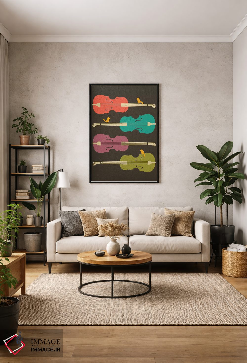 بوم گالری ایماژ طوری طراحی شده که اثر روی دیوار «پرداختشده» و حرفهای دیده شود—نه پرزرقوبرقِ بیپایه؛ بلکه دقیق و خوشپرداخت. بافت ظریف کنواس باعث میشود حس اثر هنری را در نگاه نزدیک نگه میدارد و همان «پرداخت» تفاوت را میسازد. قابپذیری باعث میشود قاب مناسب مرز بصری تمیزتری به اثر میدهد بهخصوص وقتی نور موضعی ملایم داشته باشید. حاصل کار، یک تابلو خوشنشین است که هم از دور اثرگذار است و هم از نزدیک خوشخوان؛ برای هدیهی هنری هم انتخاب محترمانهای است.