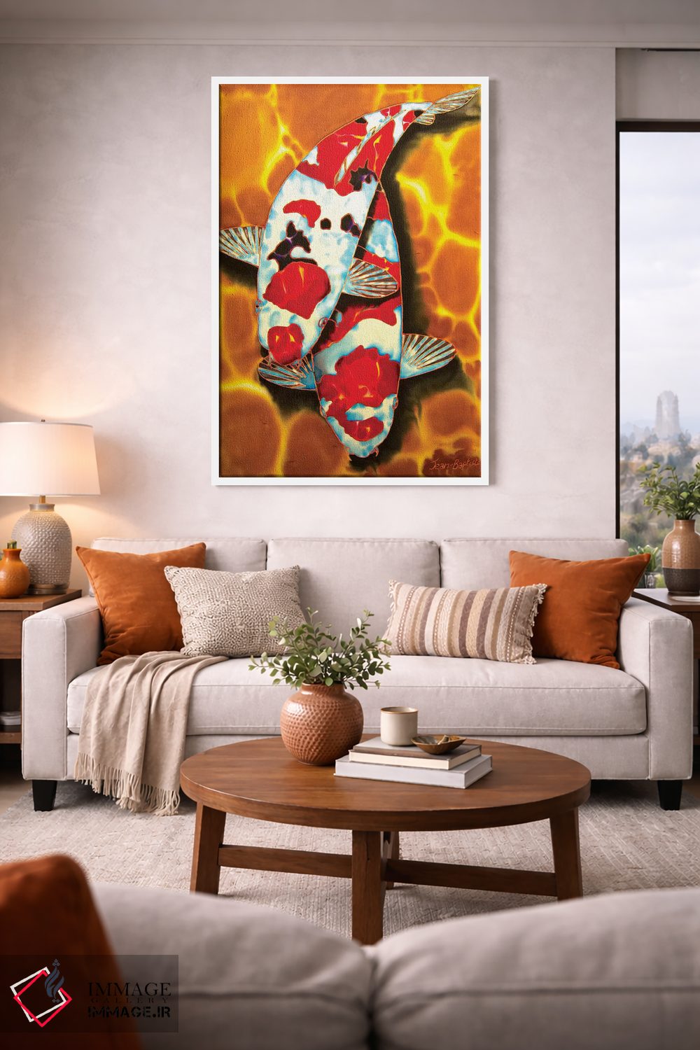 براساس پالت گرم اثر، قاب تیک گرم (چوبی) پیشنهاد اول است و مشکی مات (فریم متوسط) مکمل. برای سفارشهای پروژهای با ابعاد و قابهای اختصاصی با ایماژ در تماس باشید.