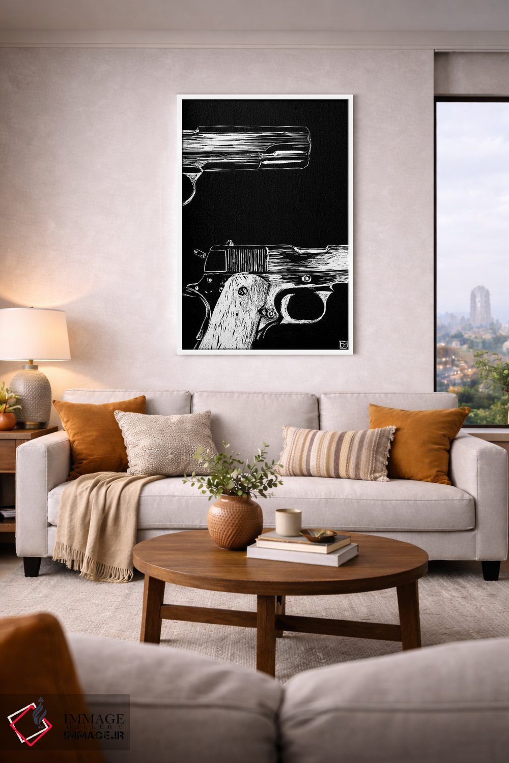 براساس پالت خنثی اثر، قاب مشکی مات (فریم باریک) پیشنهاد اول است و سفید مات (فریم باریک) مکمل. برای سفارشهای پروژهای با ابعاد و قابهای اختصاصی با ایماژ در تماس باشید.