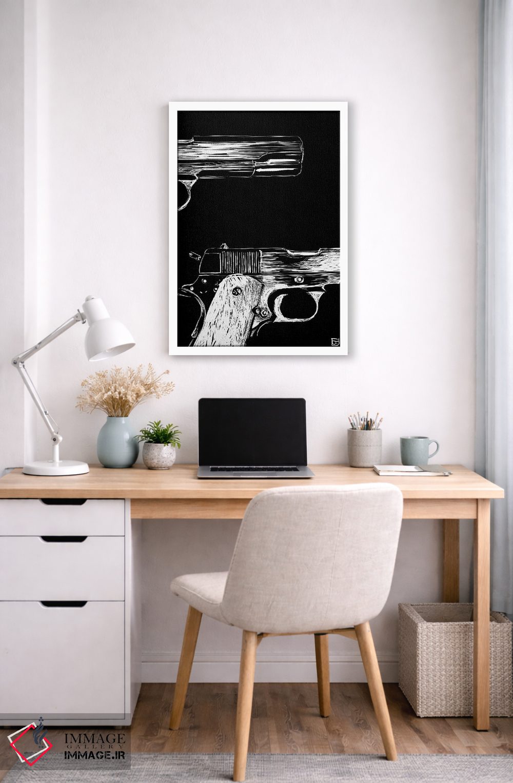 در بوم گالری ایماژ، همهچیز طوری طراحی شده که اثر روی دیوار «پرداختشده» و حرفهای دیده شود—نه پرزرقوبرقِ بیپایه؛ بلکه دقیق و خوشپرداخت. بافت ظریف کنواس باعث میشود حس اثر هنری را در نگاه نزدیک نگه میدارد و برای محیطهای رسمیتر هم انتخاب مطمئنی است. با چاپ جیکلی (Giclée)، گرباورهاها را تمیزتر و طبیعیتر نشان میدهد و همین «پرداخت» تفاوت را میسازد. در نهایت، نتیجه چیزی شبیه تفاوت نسخهی معمولی با نسخهی باکیفیتتر است: نه رنگِ بیشتر، بلکه پرداخت بهتر؛ در فضاهای کاری، این نظم بصری خیلی به چشم میآید.