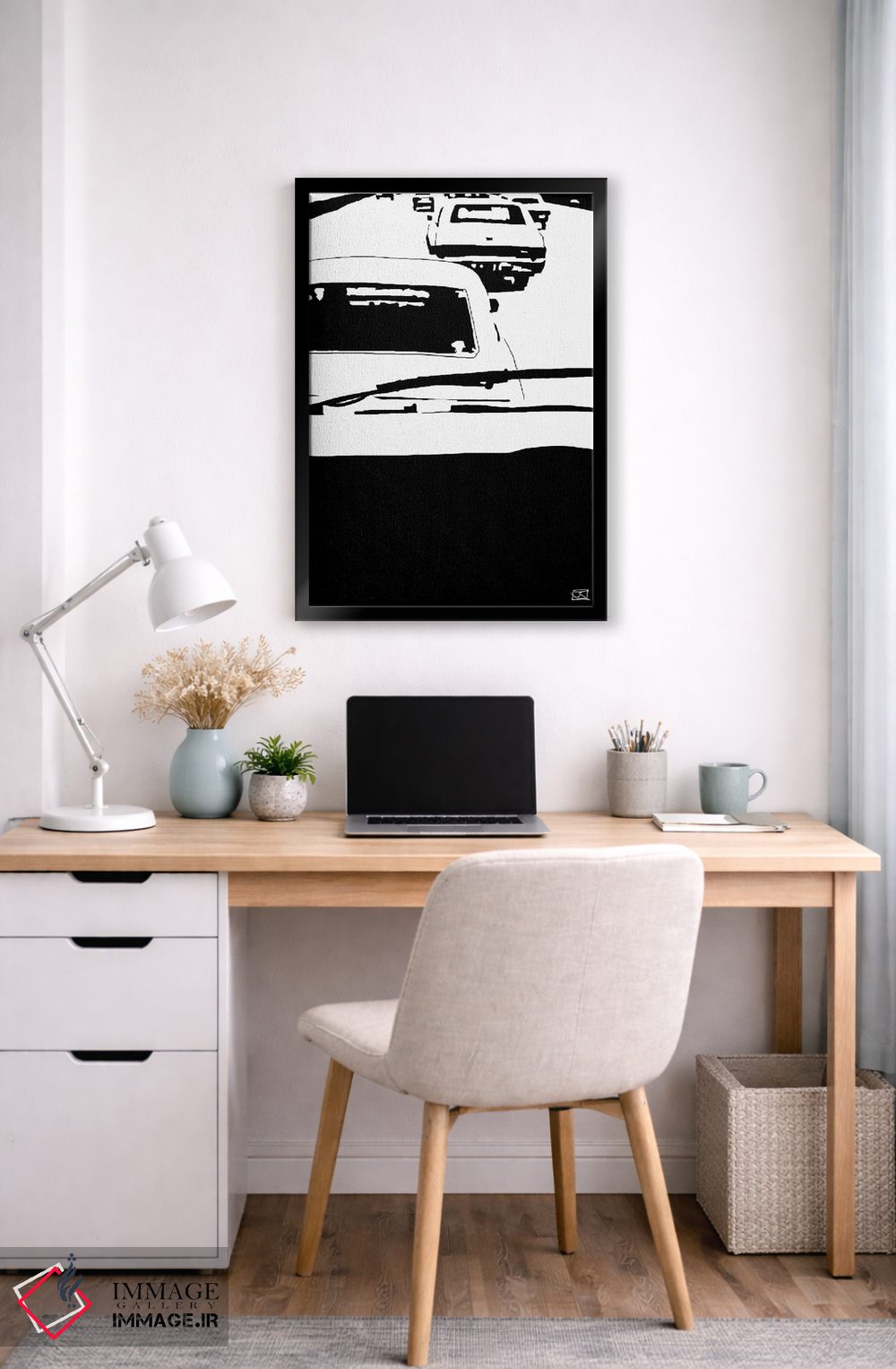 براساس پالت خنثی اثر، قاب مشکی مات (فریم باریک) پیشنهاد اول است و سفید مات (فریم باریک) مکمل. برای سفارشهای پروژهای با ابعاد و قابهای اختصاصی با ایماژ در تماس باشید.