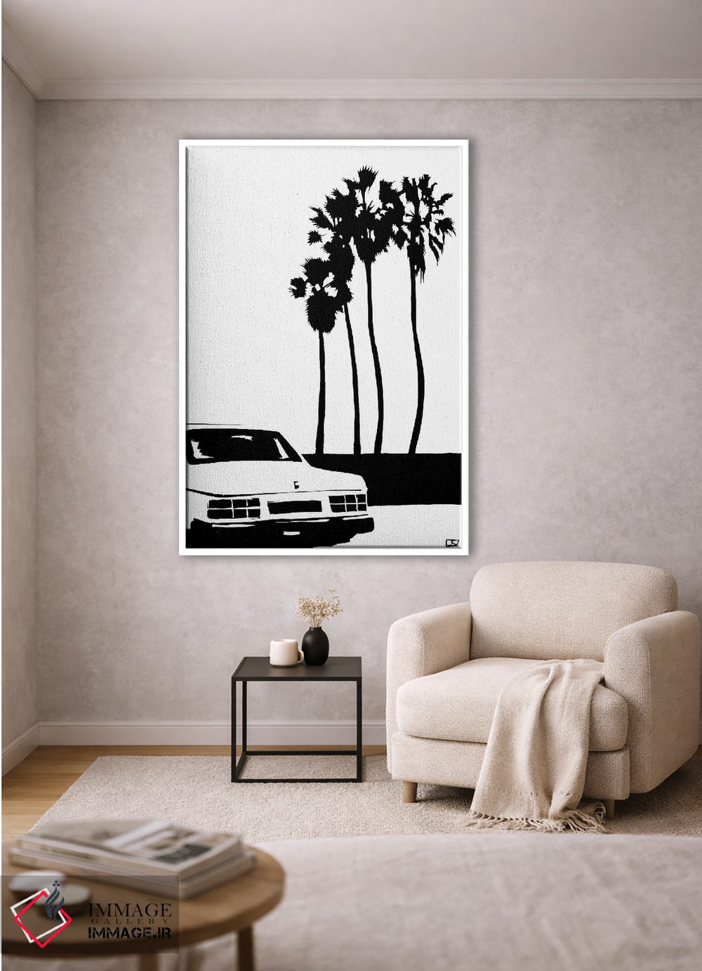 «ماشین و نخلها» اثرِ «جوزپه کریستیانو» با رویکرد هنری، یک انتخاب شیک و تمیز برای دیوارهایی است که دنبال نظم و کنتراست پُرانرژی.