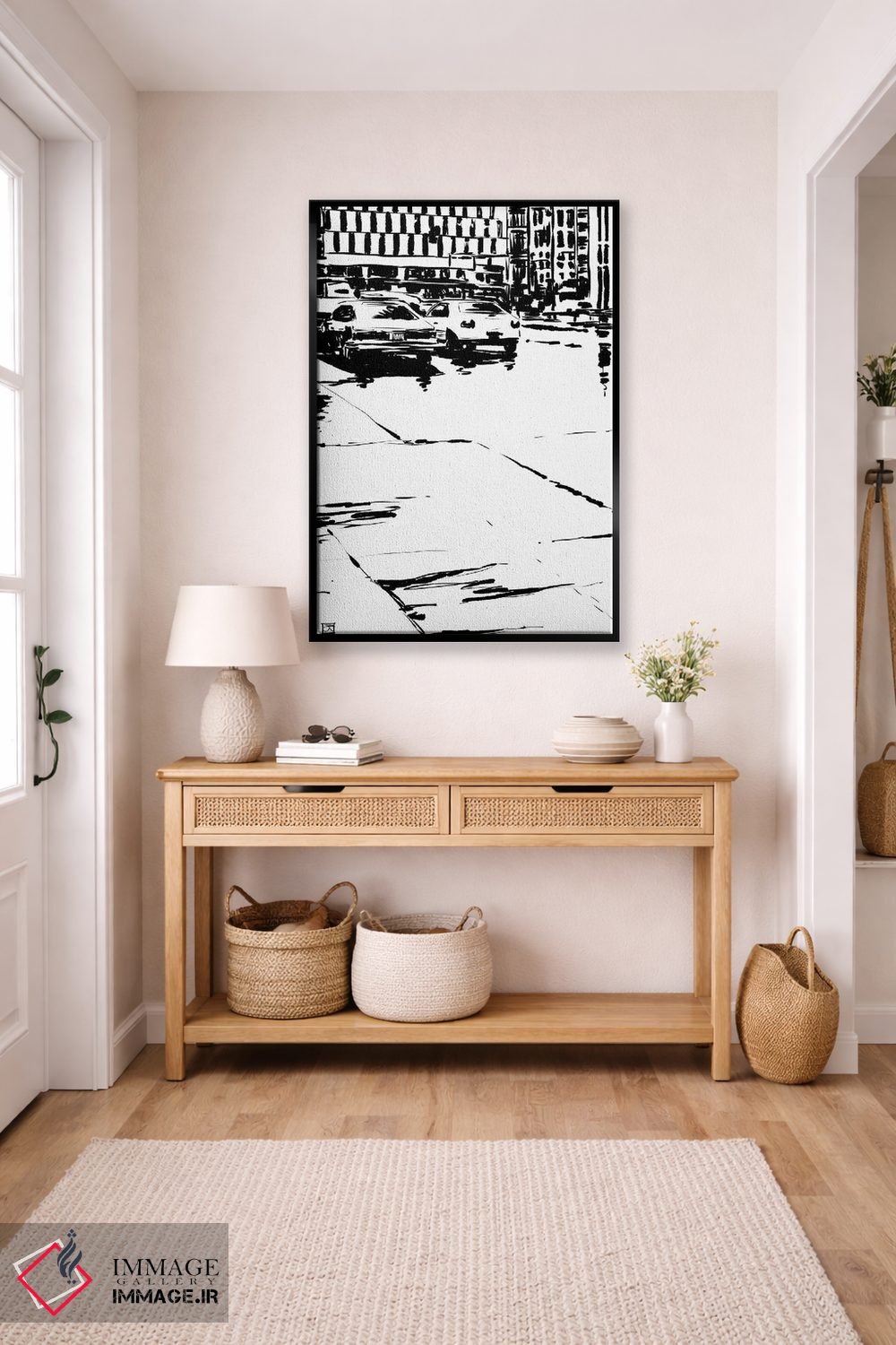 براساس پالت خنثی اثر، قاب مشکی مات (فریم باریک) پیشنهاد اول است و سفید مات (فریم باریک) مکمل. برای سفارشهای پروژهای با ابعاد و قابهای اختصاصی با ایماژ در تماس باشید.