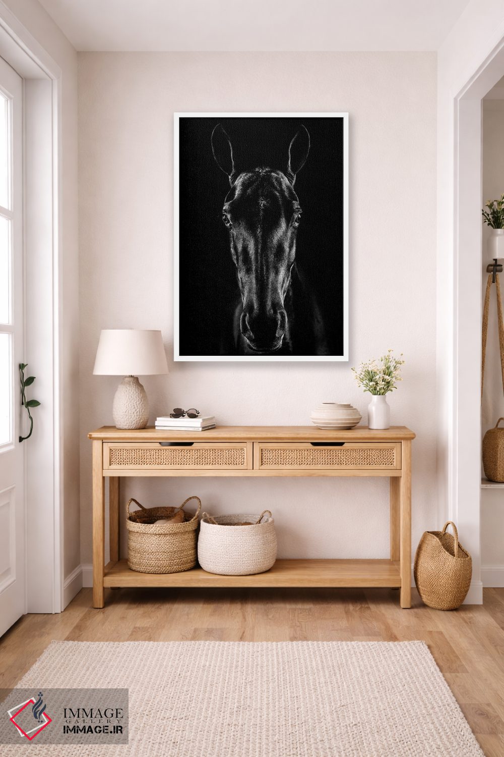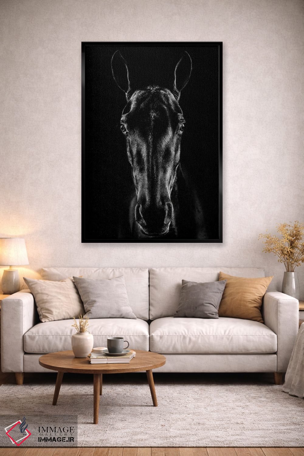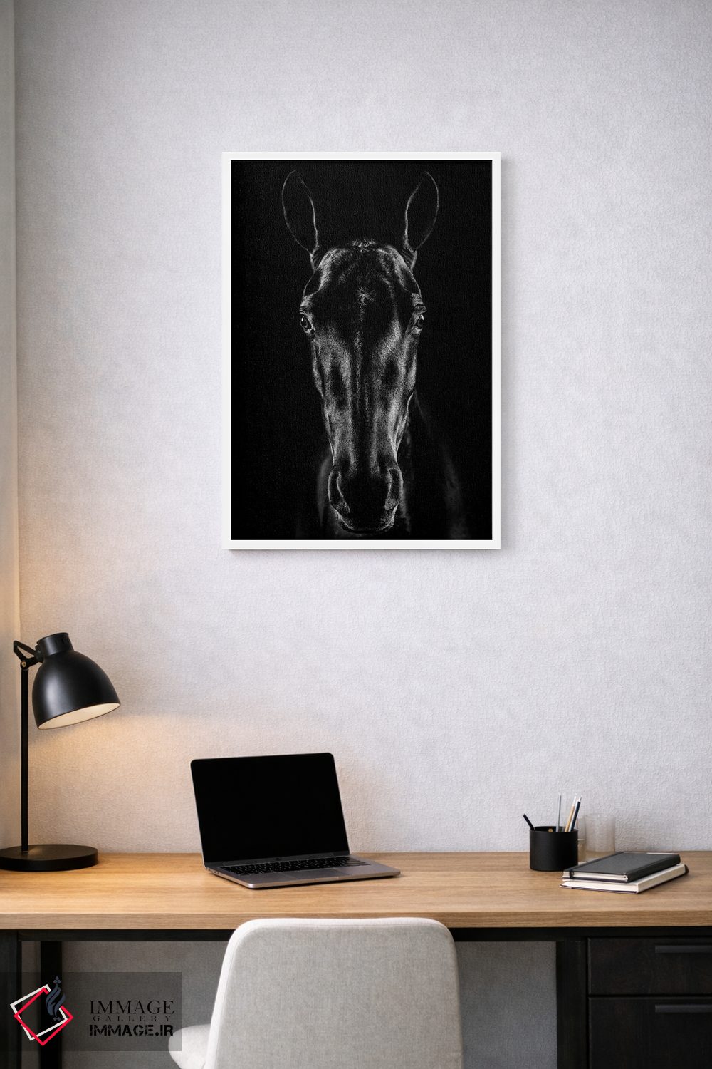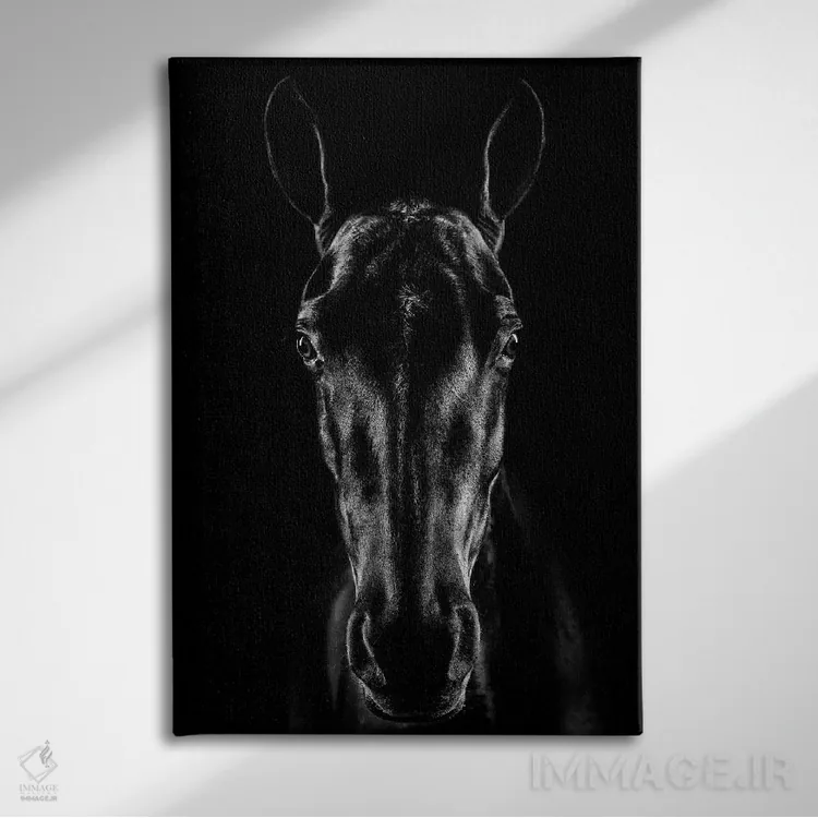 تابلو دکوراتیو اسب در فضای نوآر اثر جکسون کاروالیو