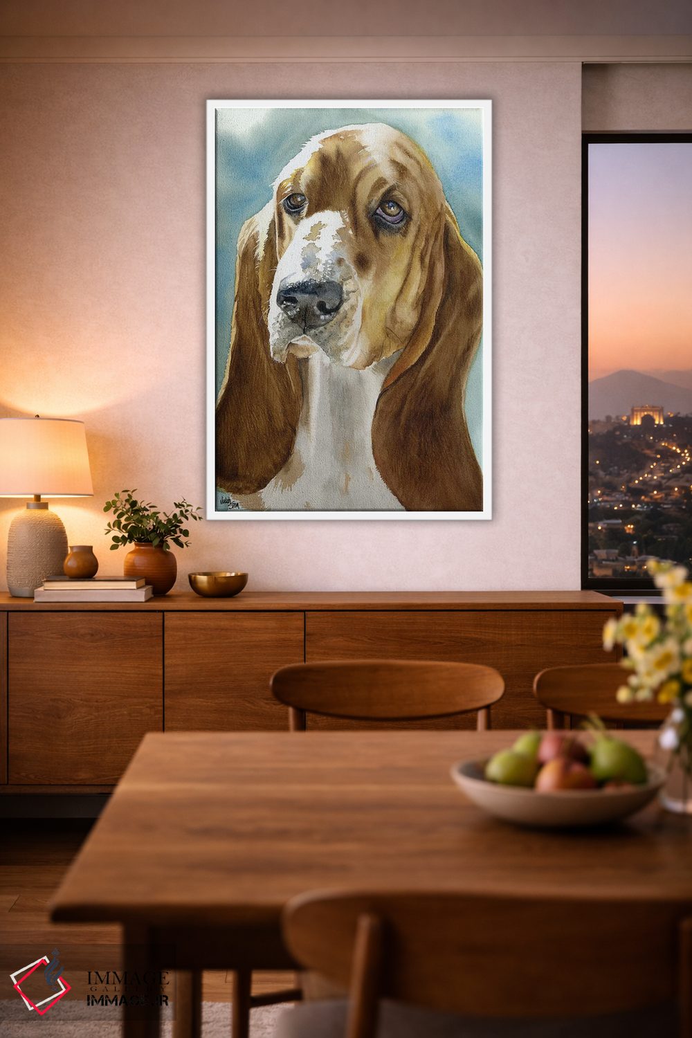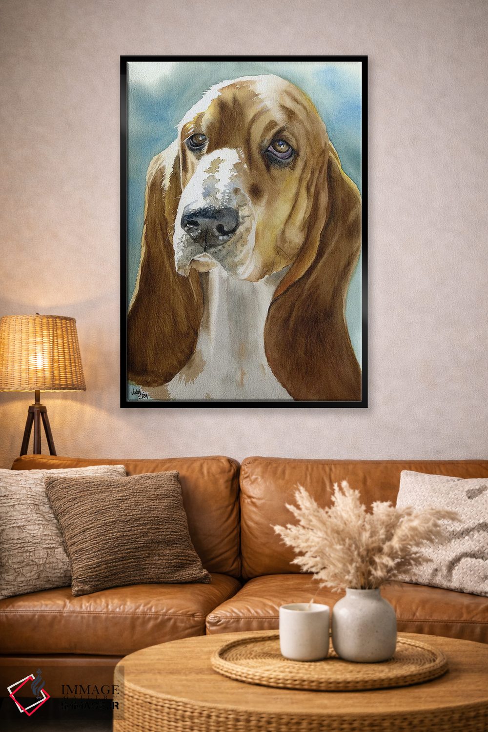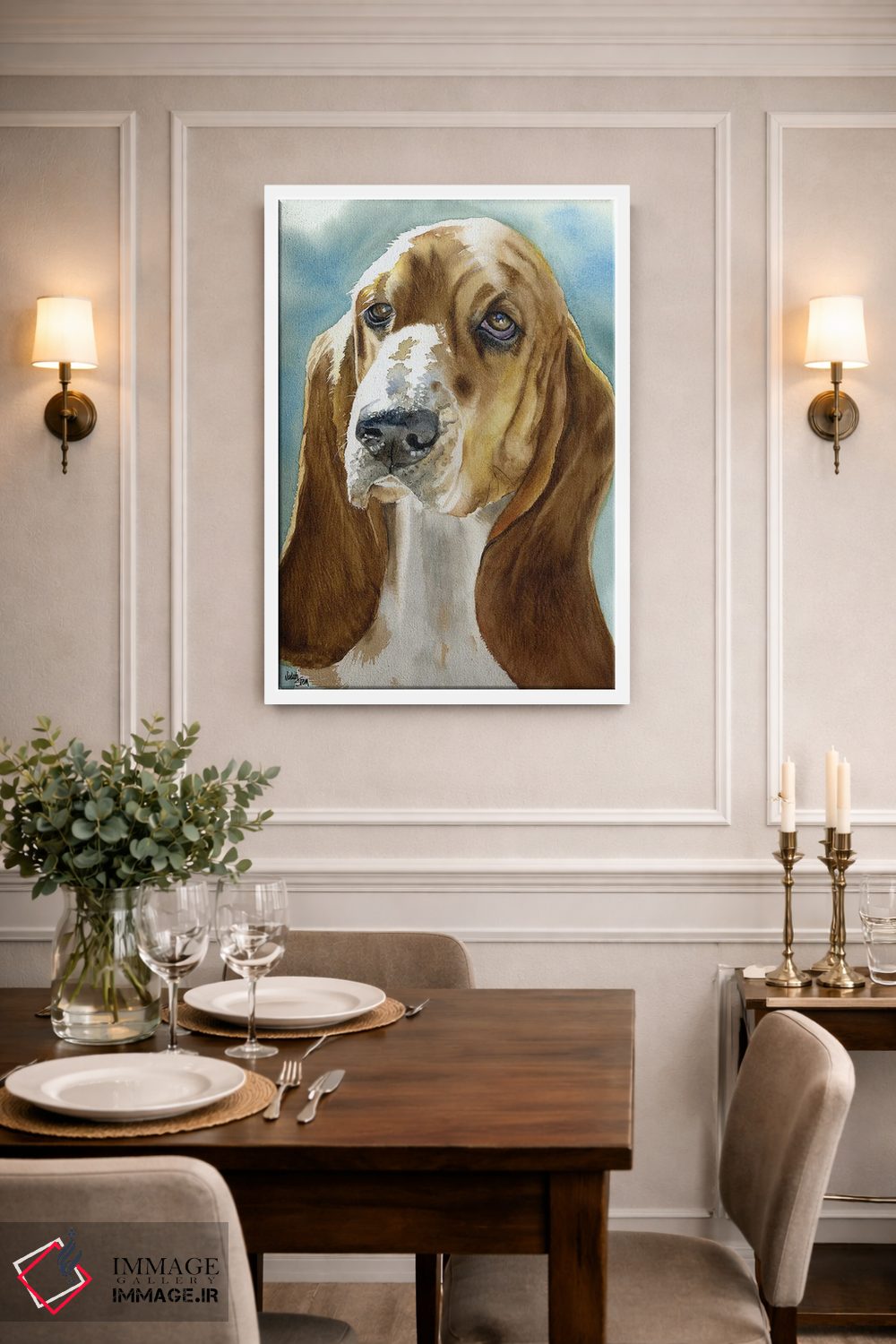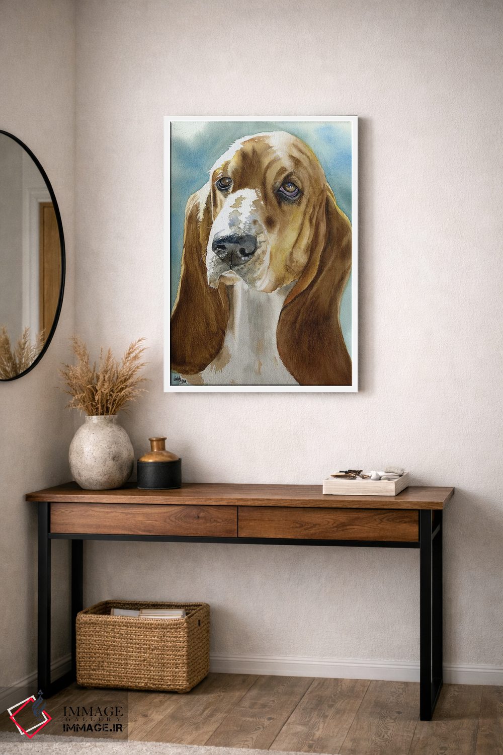 براساس پالت گرم اثر، قاب بلوط روشن (چوبی) پیشنهاد اول است و استخوانی ملایم مکمل. برای سفارشهای پروژهای با ابعاد و قابهای اختصاصی با ایماژ در تماس باشید.