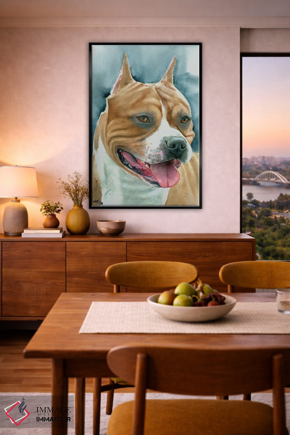 براساس پالت ترکیبی اثر، قاب تیک گرم (چوبی) پیشنهاد اول است و مشکی مات (فریم متوسط) مکمل. برای سفارشهای پروژهای با ابعاد و قابهای اختصاصی با ایماژ در تماس باشید.