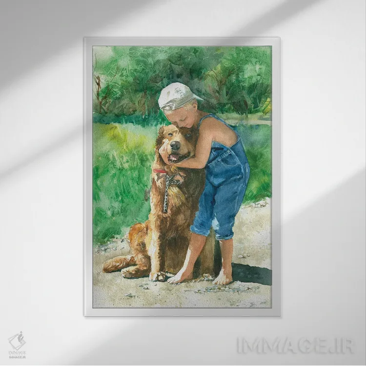 تابلو دکوراتیو بوسه خداحافظی پسر و سگ اثر جودیت استاین