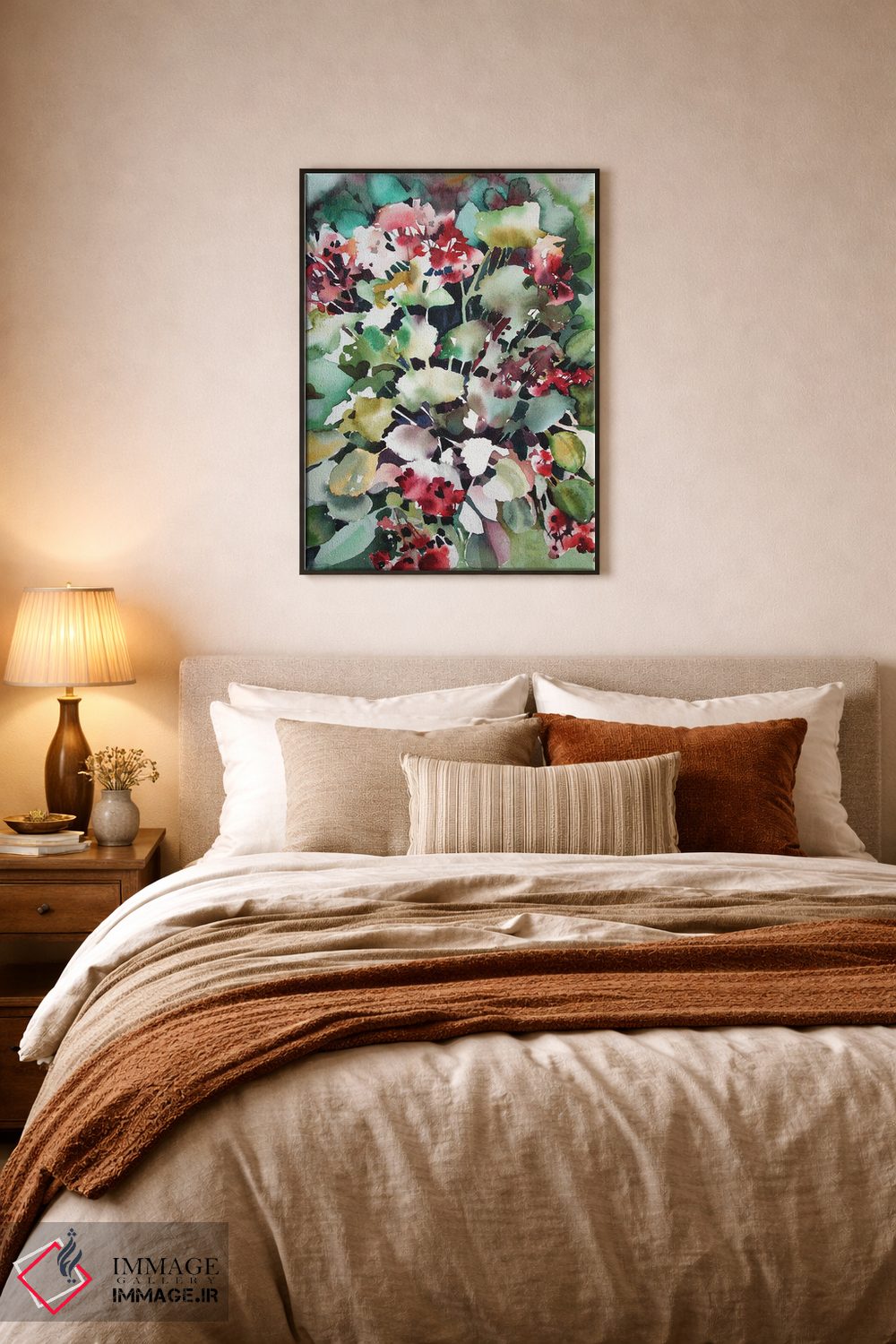 براساس پالت ترکیبی اثر، قاب تیک گرم (چوبی) پیشنهاد اول است و مشکی مات (فریم متوسط) مکمل. برای سفارشهای پروژهای با ابعاد و قابهای اختصاصی با ایماژ در تماس باشید.