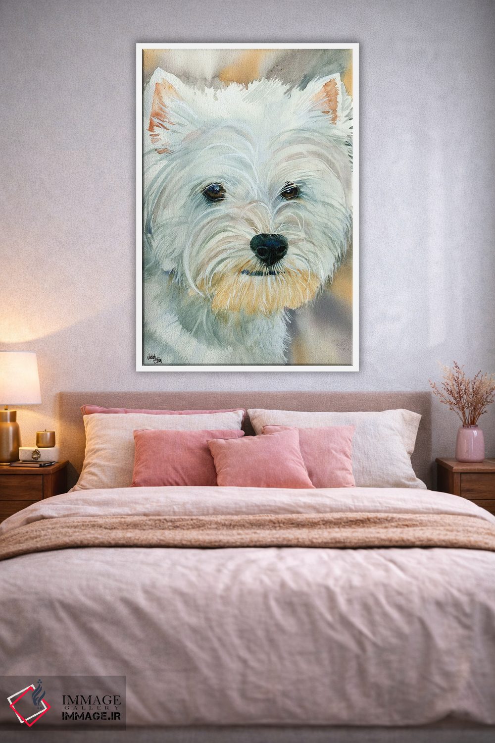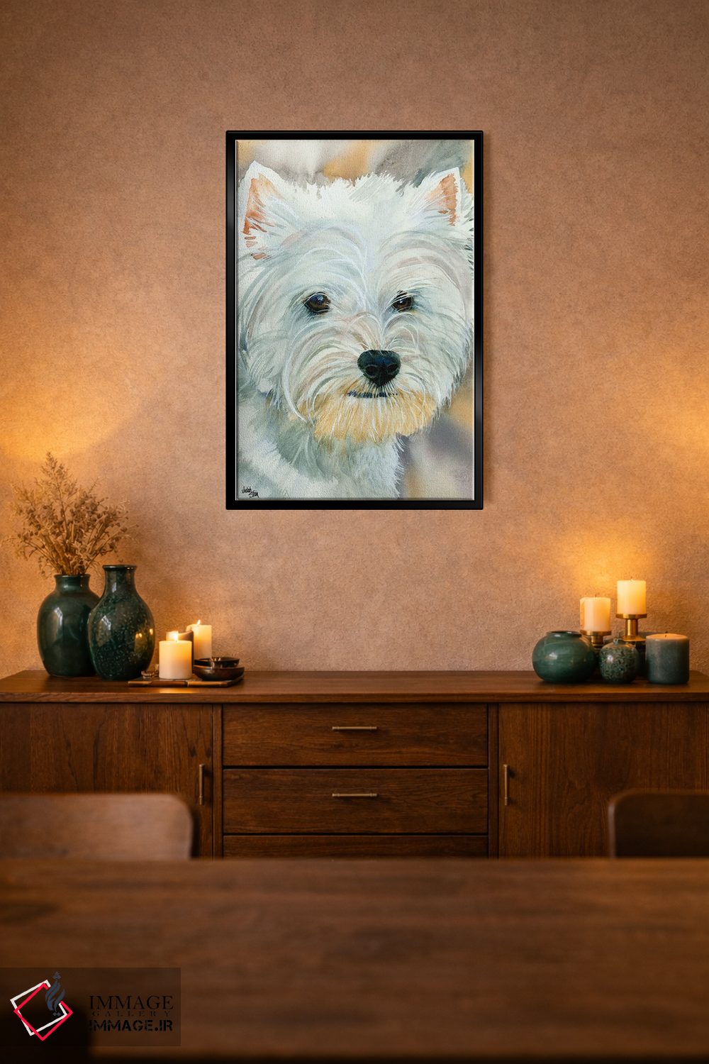 براساس پالت گرم اثر، قاب بلوط روشن (چوبی) پیشنهاد اول است و استخوانی ملایم مکمل. برای سفارشهای پروژهای با ابعاد و قابهای اختصاصی با ایماژ در تماس باشید.