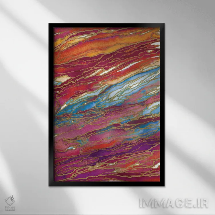 براساس پالت ترکیبی اثر، قاب تیک گرم (چوبی) پیشنهاد اول است و مشکی مات (فریم متوسط) مکمل. برای سفارشهای پروژهای با ابعاد و قابهای اختصاصی با ایماژ در تماس باشید.