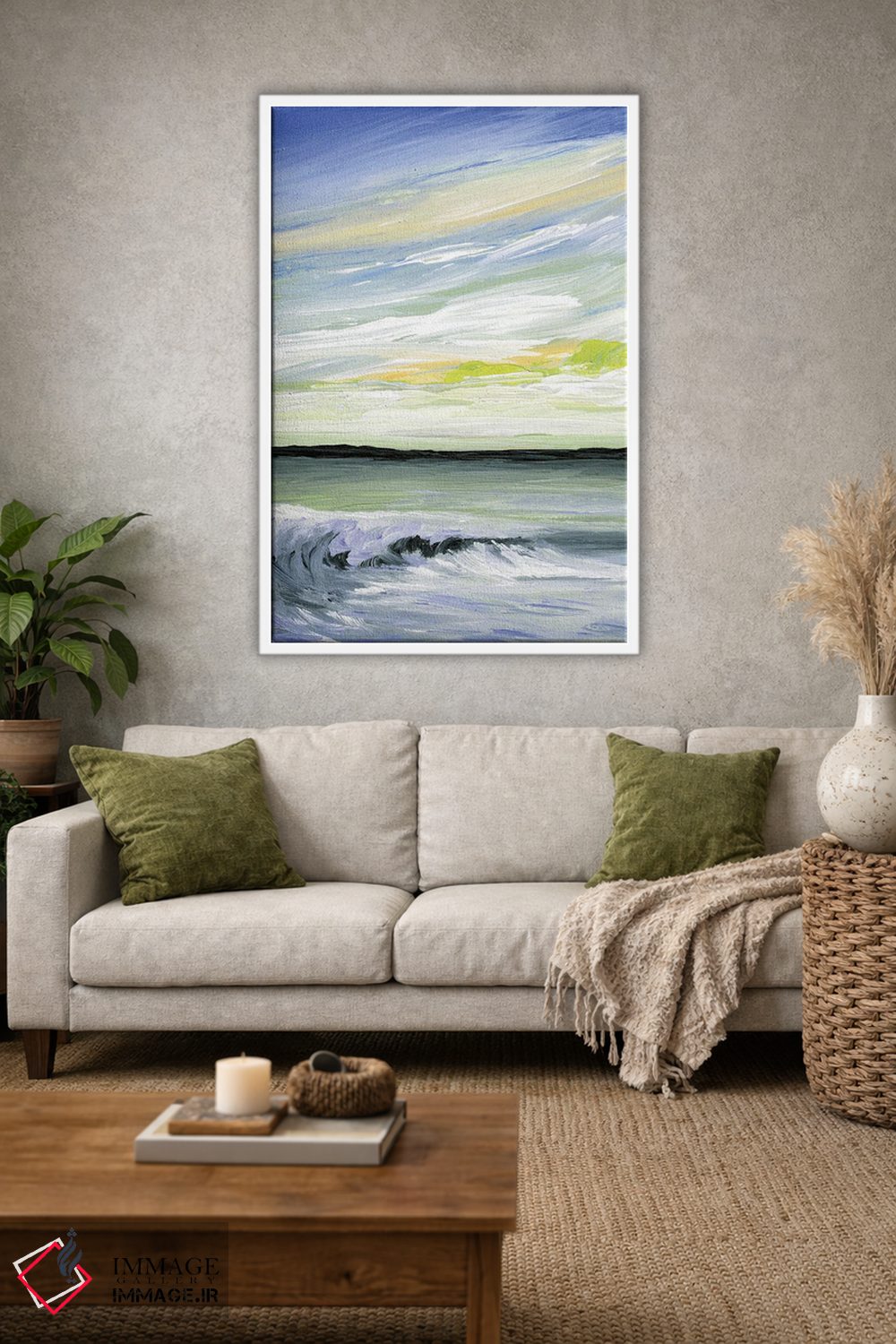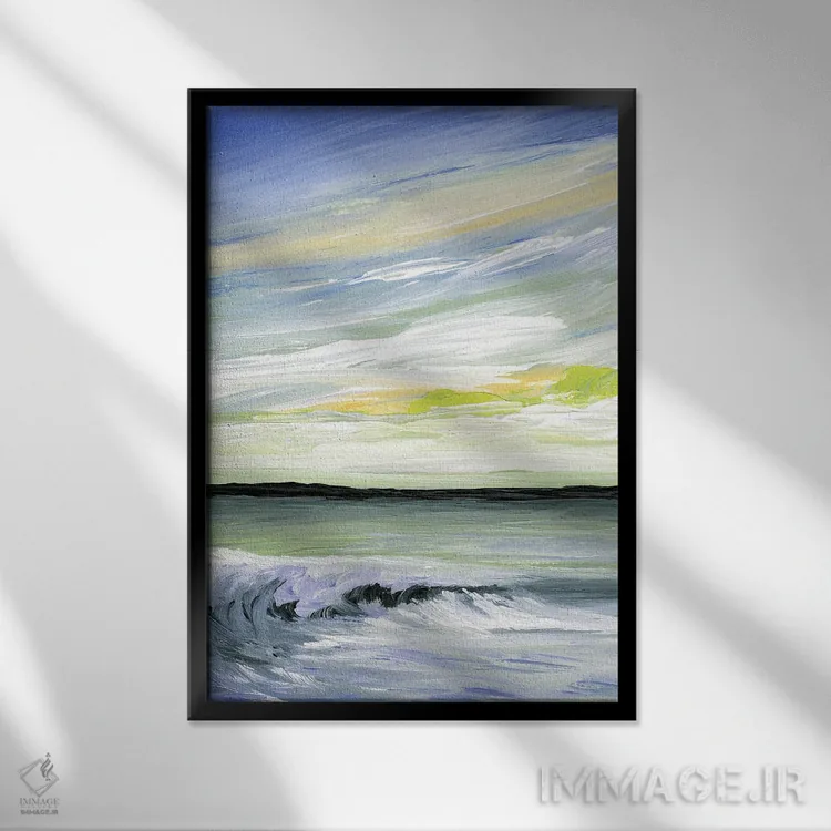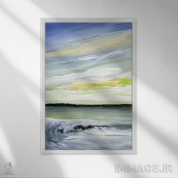 براساس پالت سرد اثر، قاب سفید مات (فریم باریک) پیشنهاد اول است و نقرهای برسخورده (متالیک) مکمل. برای سفارشهای پروژهای با ابعاد و قابهای اختصاصی با ایماژ در تماس باشید.