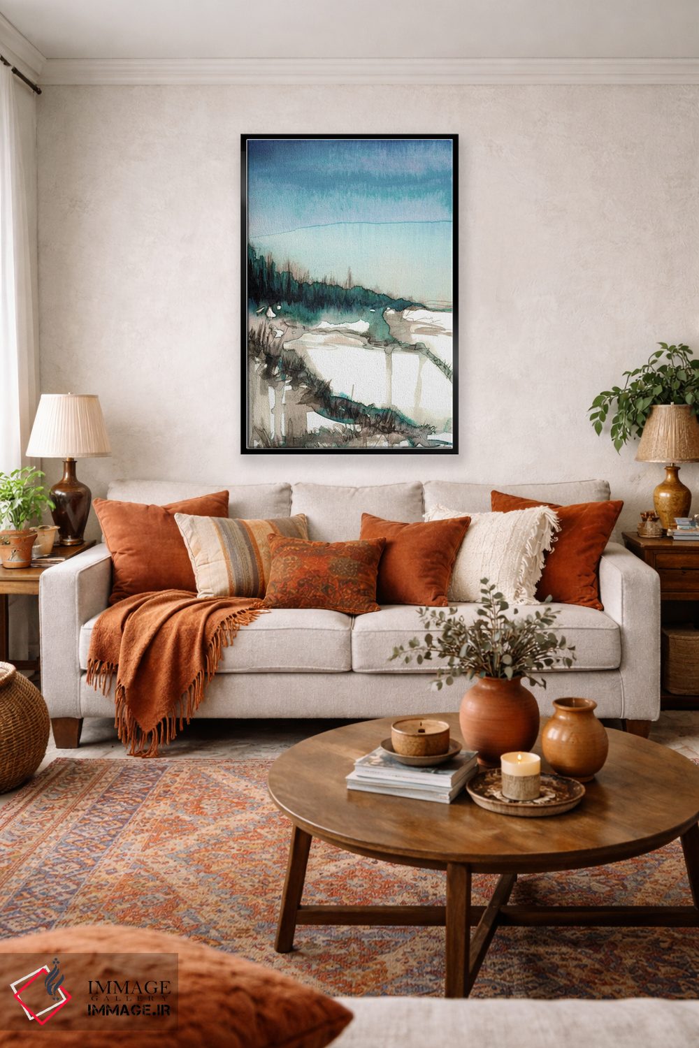 ساختار بوم گالری ایماژ طوری است که اثر روی دیوار «پرداختشده» و حرفهای دیده شود—نه پرزرقوبرقِ بیپایه؛ بلکه دقیق و خوشپرداخت. بافت ظریف کنواس باعث میشود حس اثر هنری را در نگاه نزدیک نگه میدارد. قابپذیری کمک میکند هماهنگی قاب با پالت رنگ جلوه را تقویت میکند و نتیجه را یکدستتر میکند. در نهایت، نتیجه چیزی شبیه تفاوت نسخهی معمولی با نسخهی باکیفیتتر است: نه رنگِ بیشتر، بلکه پرداخت بهتر؛ و اگر بخواهید، میتوان چیدمان را برای گالریوال هم پیشنهاد داد.