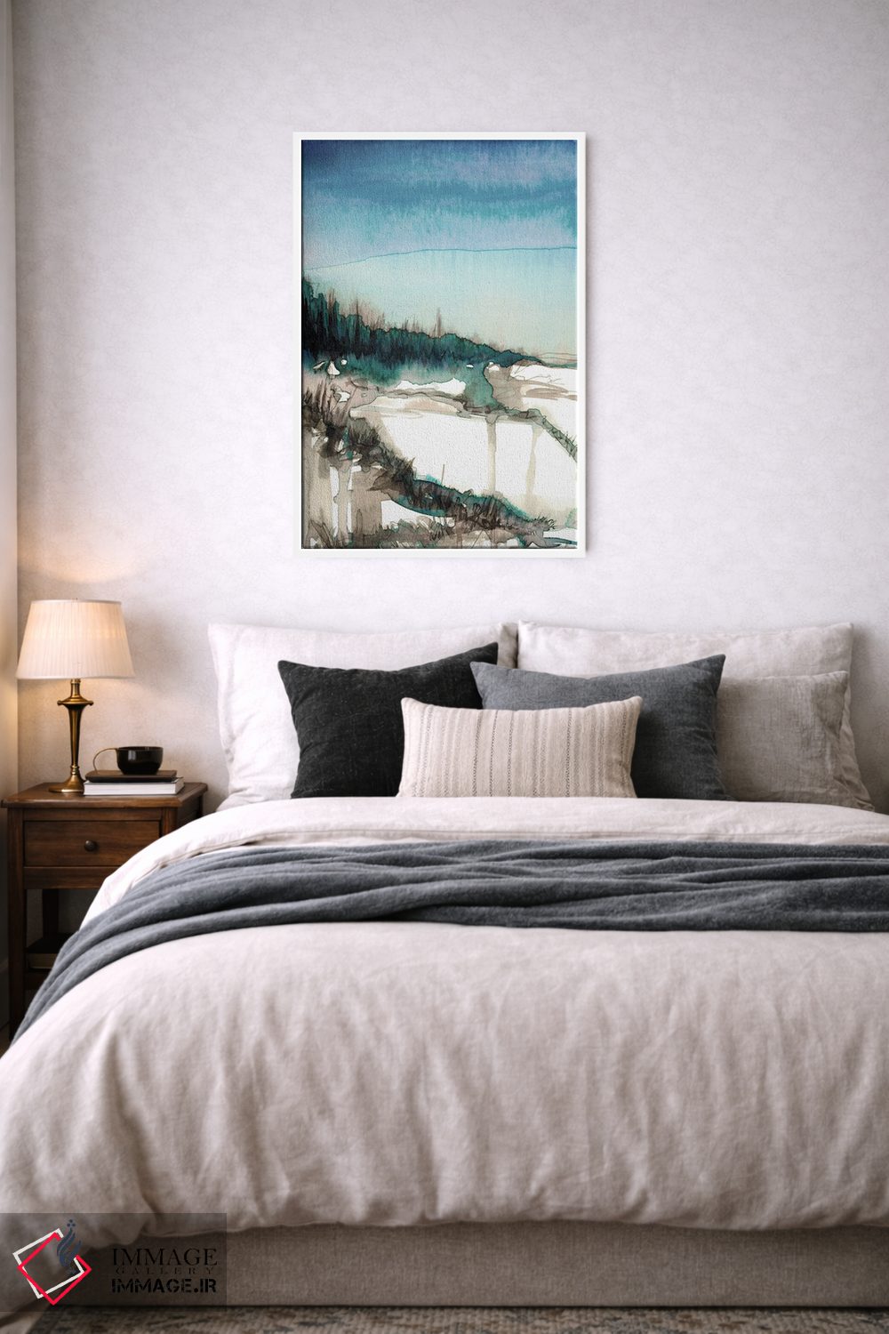 براساس پالت سرد اثر، قاب سفید مات (فریم باریک) پیشنهاد اول است و نقرهای برسخورده (متالیک) مکمل. برای سفارشهای پروژهای با ابعاد و قابهای اختصاصی با ایماژ در تماس باشید.