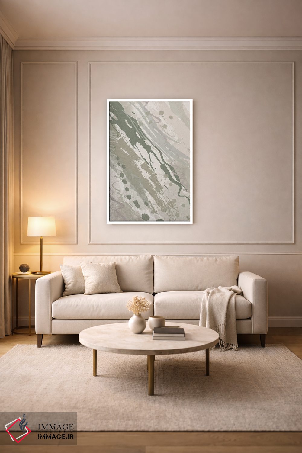 براساس پالت خنثی اثر، قاب مشکی مات (فریم باریک) پیشنهاد اول است و سفید مات (فریم باریک) مکمل. برای سفارشهای پروژهای با ابعاد و قابهای اختصاصی با ایماژ در تماس باشید.
