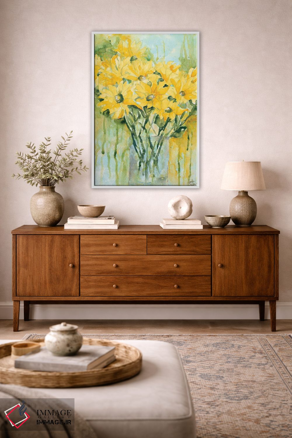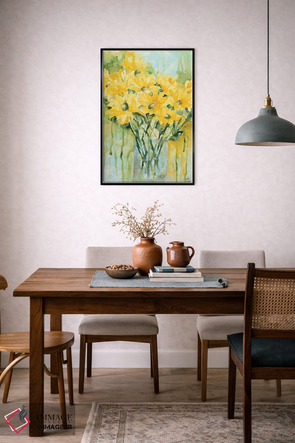 «گلدان شادی» اثرِ «جنیفر هولدن» مثل یک نفس تازه است؛ برای دیوارهای ساده، یک لطافتِ دقیق میسازد؛ برای فضای غذاخوری انتخابی خوشسلیقه است. حضورش آرام است، اما بیاثر نیست.