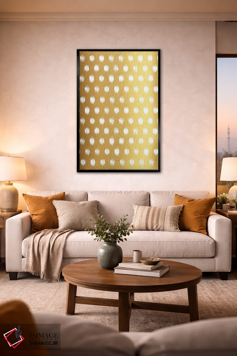 براساس پالت گرم اثر، قاب تیک گرم (چوبی) پیشنهاد اول است و مشکی مات (فریم متوسط) مکمل. برای سفارشهای پروژهای با ابعاد و قابهای اختصاصی با ایماژ در تماس باشید.