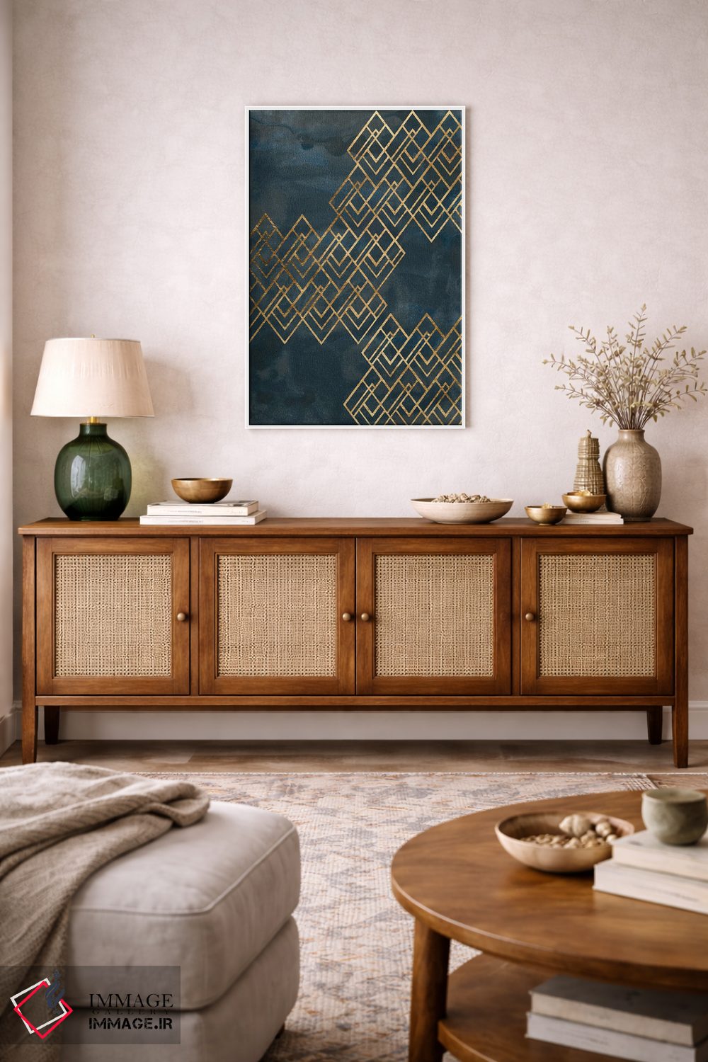 تابلو انتزاعی الگوی دکو آبی ۱ اثر جون اریکا وس